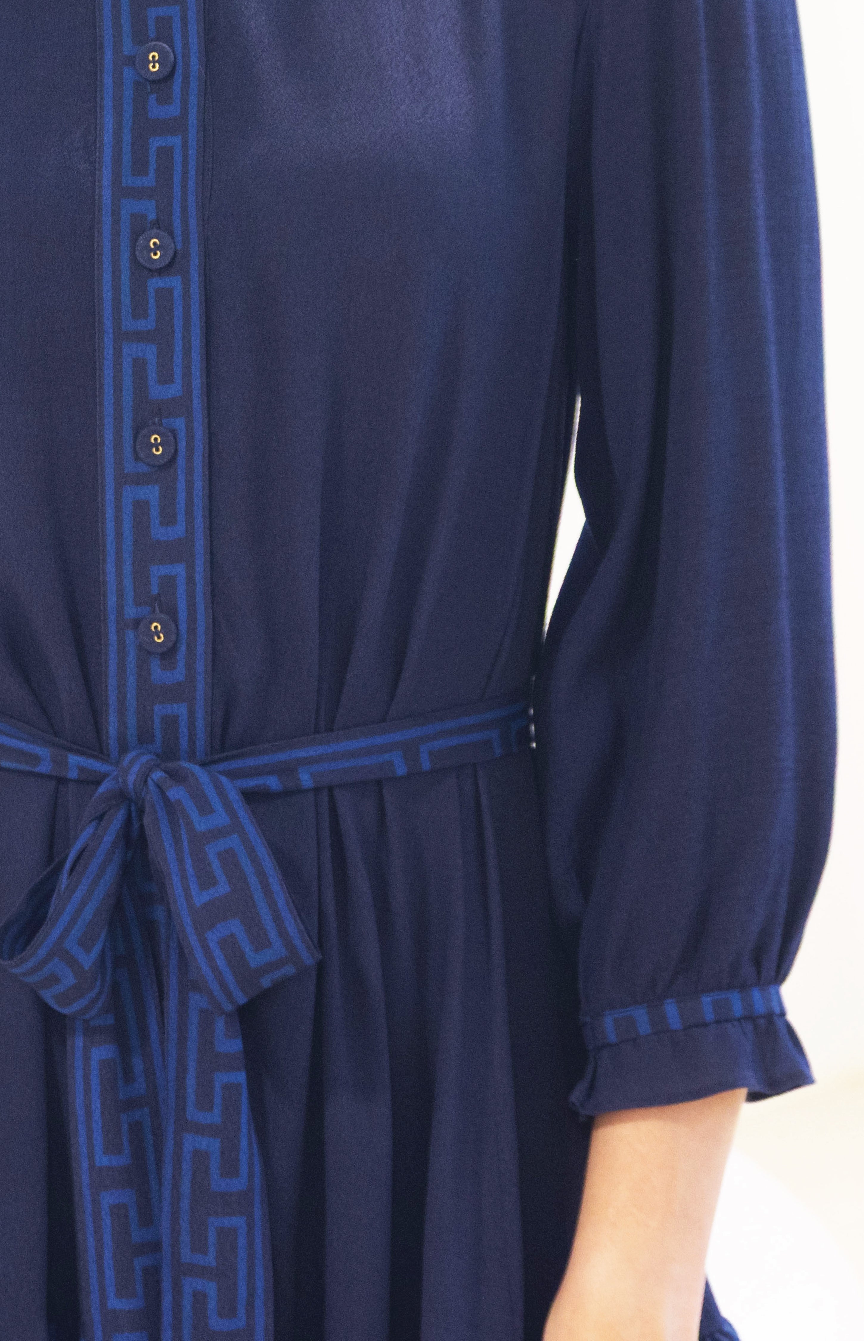 Finished with contrast trims and pockets, this easy-breezy mini dress is made for weekend wanderings.