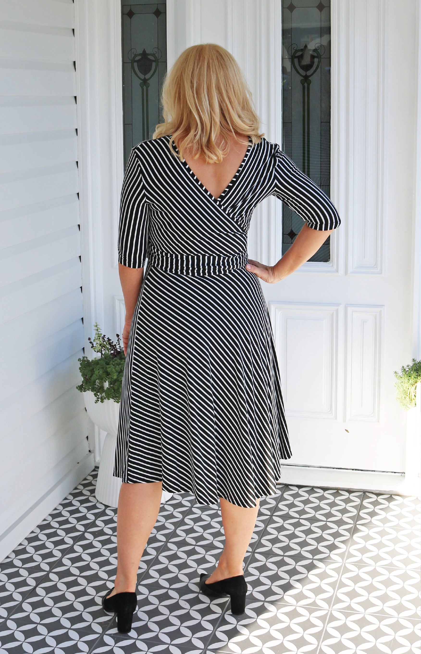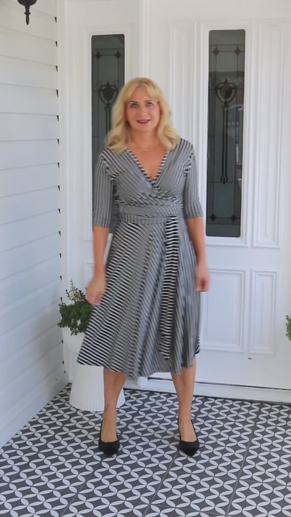 Emily Reversible Dress in black stripes