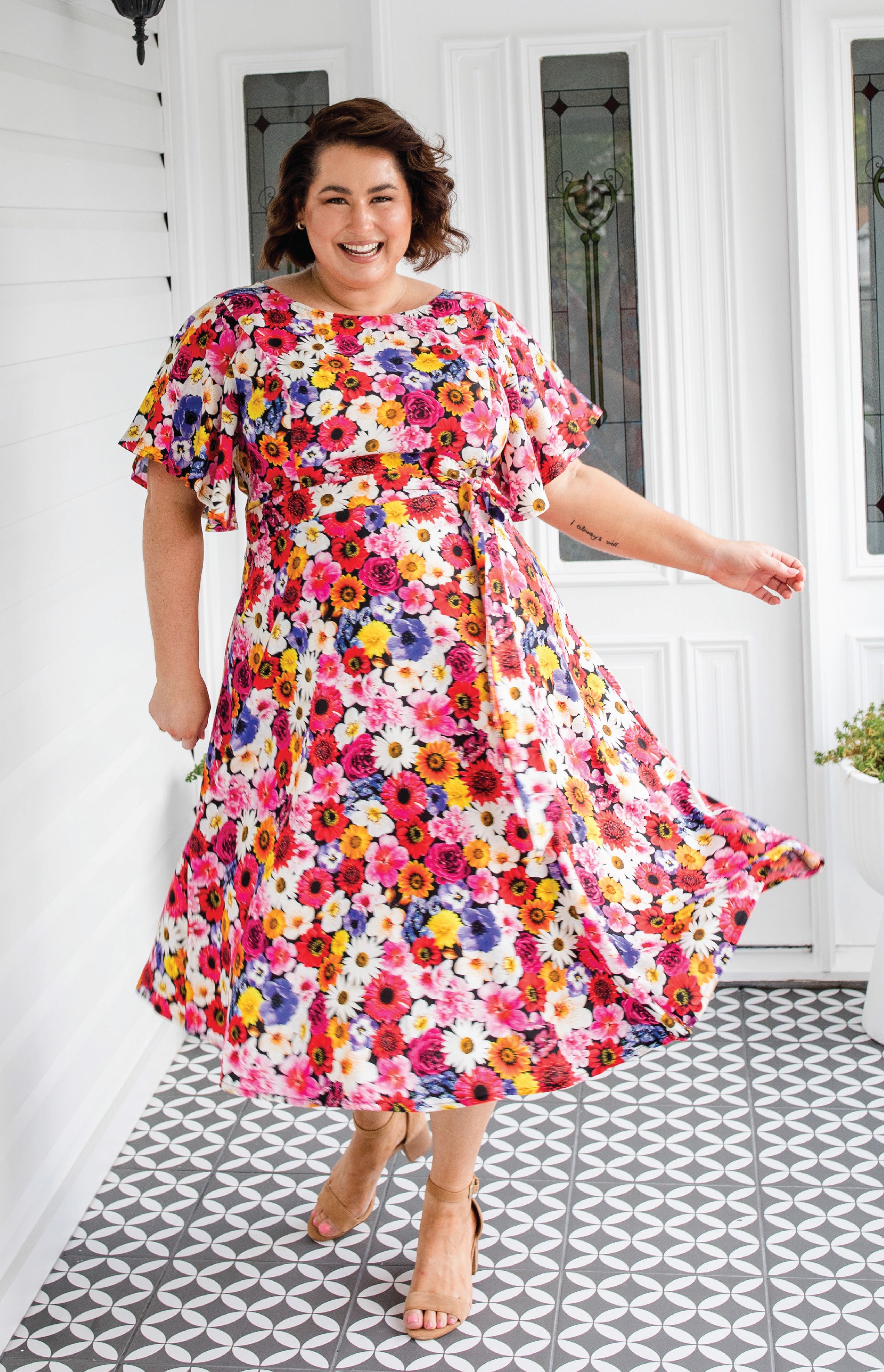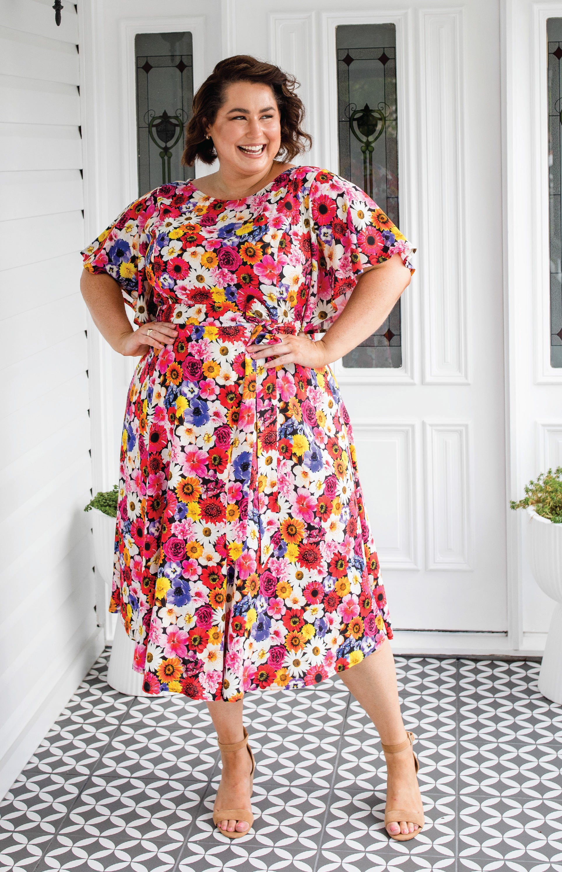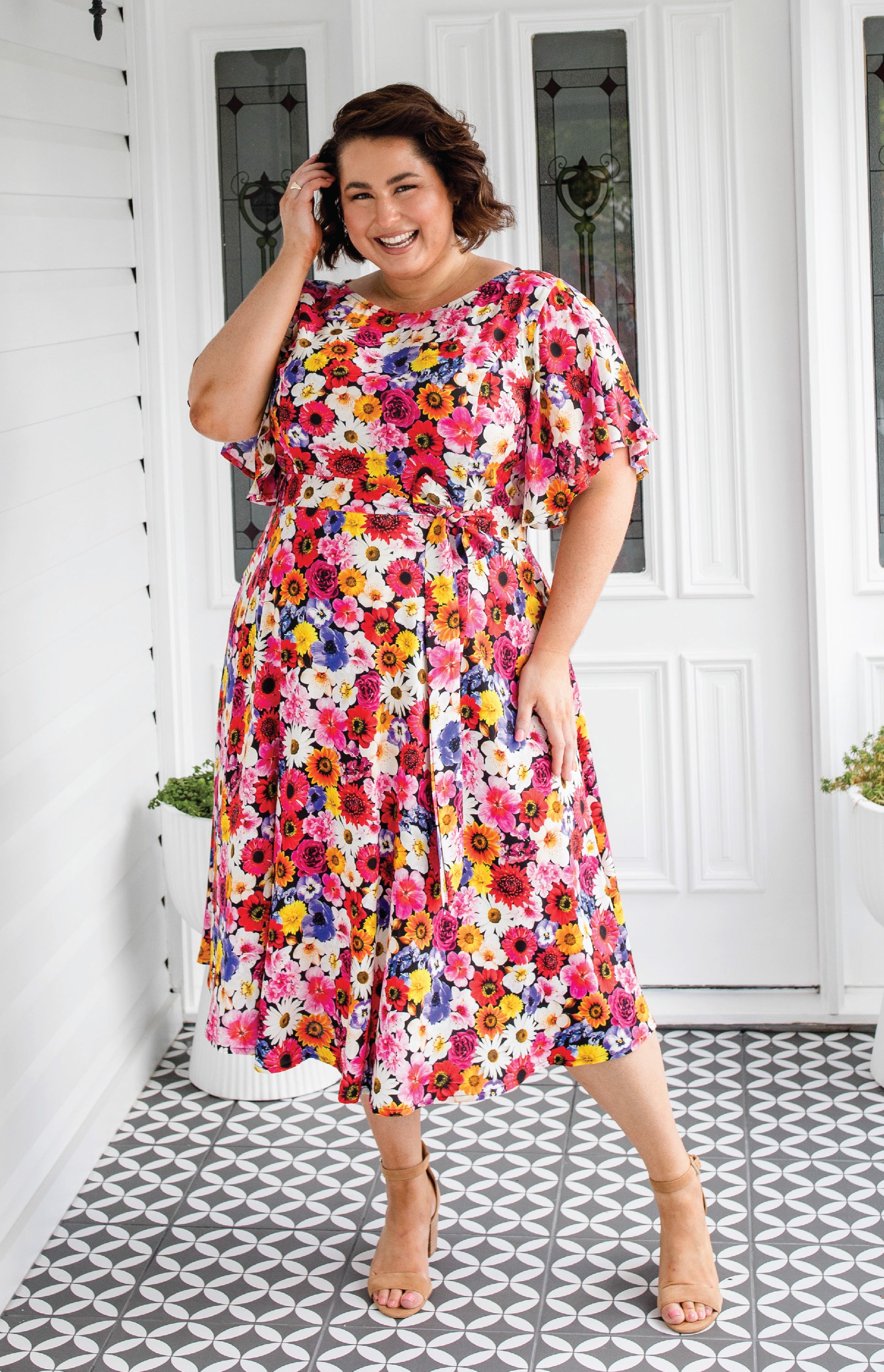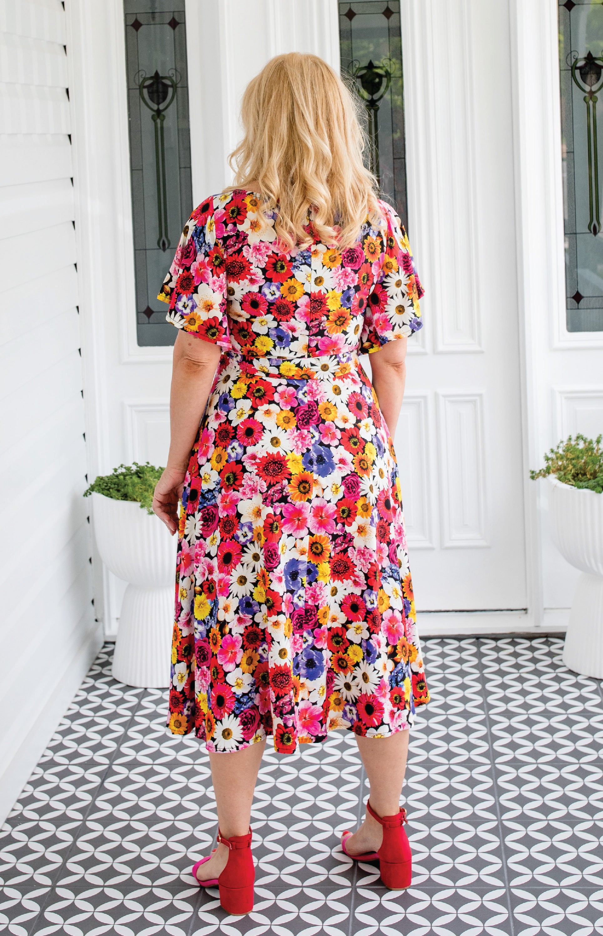 Our Evie Dress will be sure to turn heads in this gorgeous garden print. Evie is a classic dress with a lovely floaty sleeve and a tie belt. This is a buy now and wear forever piece that will have you feeling oh so ladylike and glamorous for your next special event.
