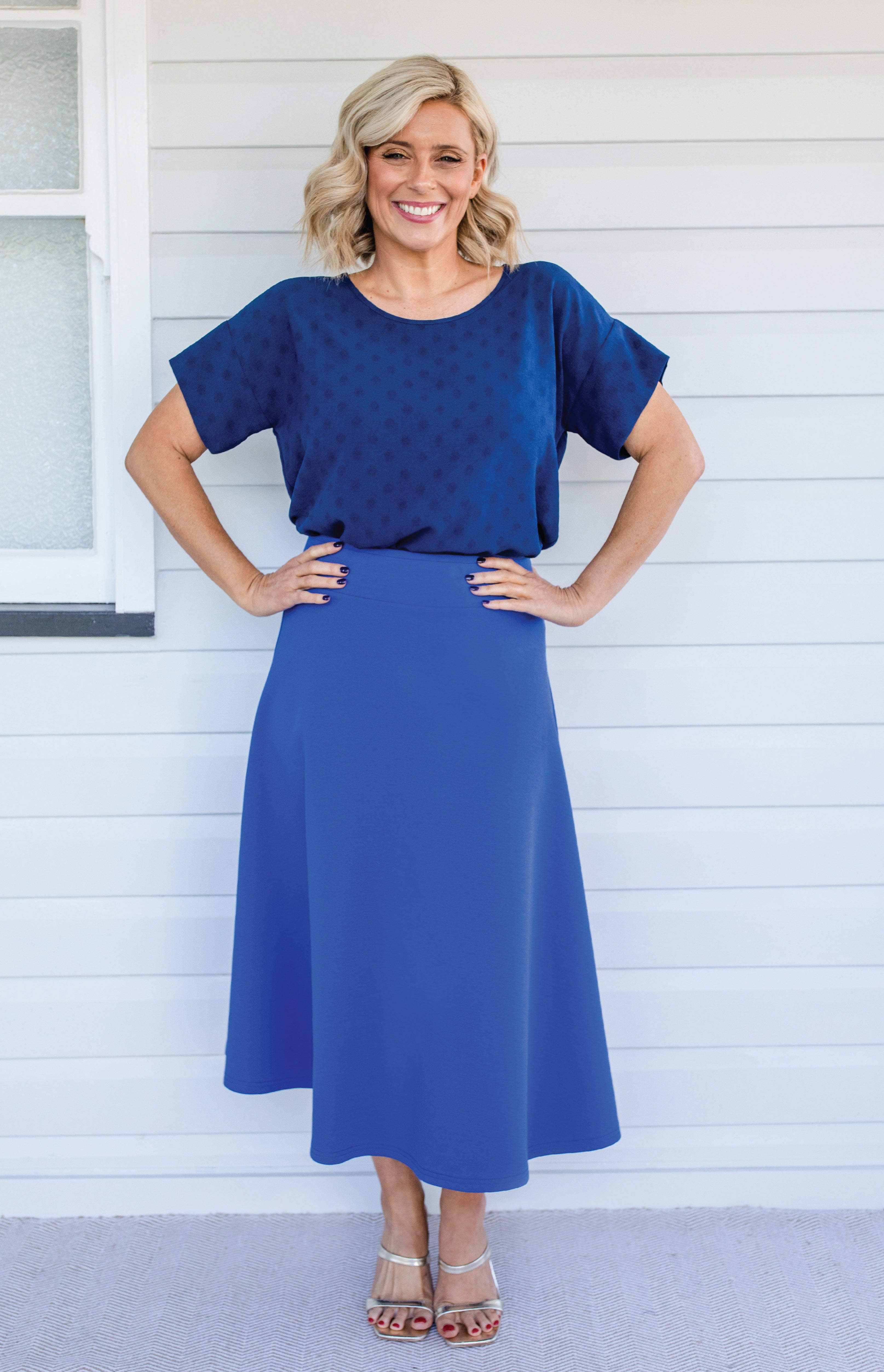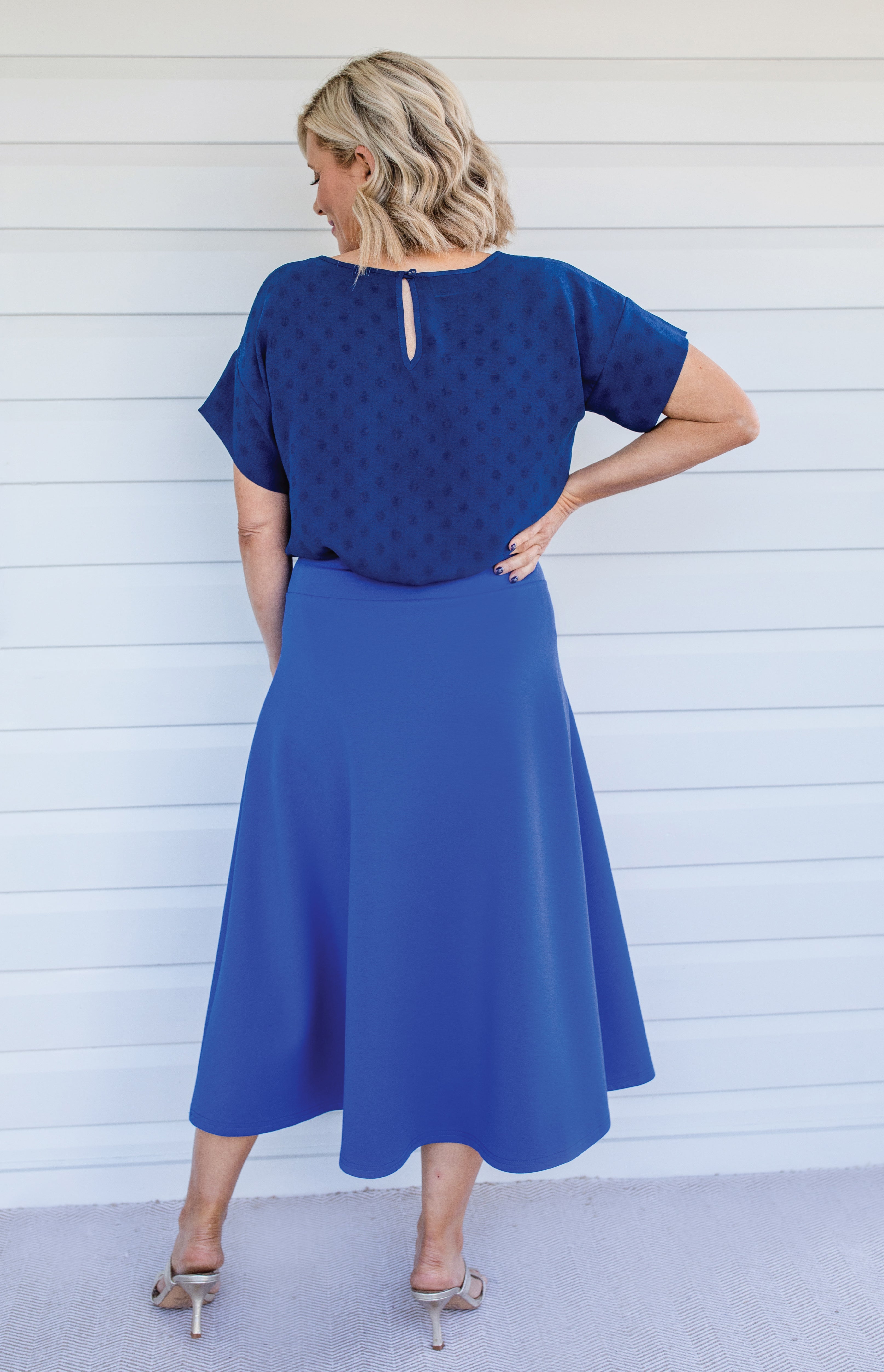 This style is based off our best-selling Must Have Skirt, except she is fashioned in our new, slightly heavier ponte fabric, making this a more structured and sophisticated look