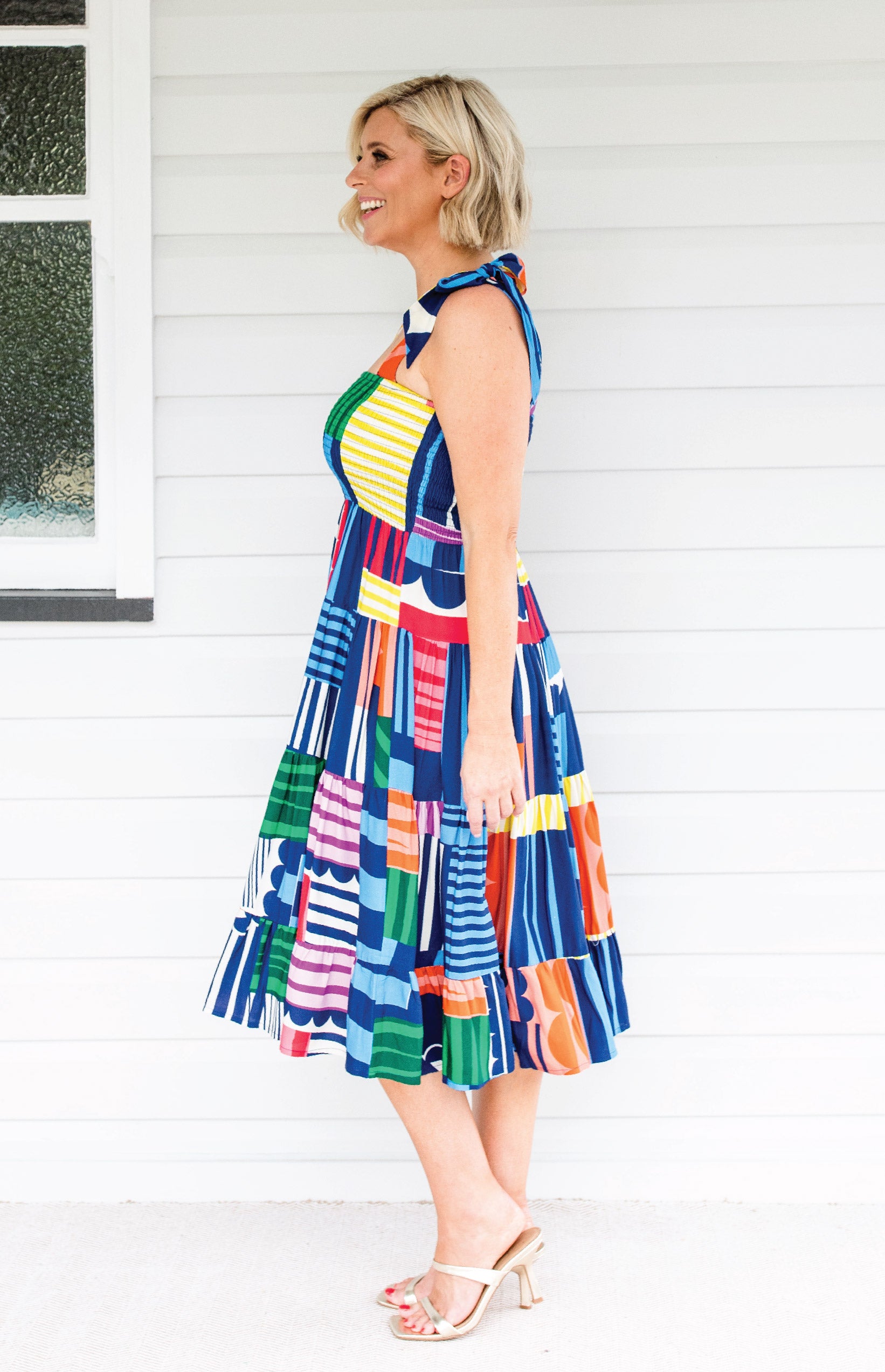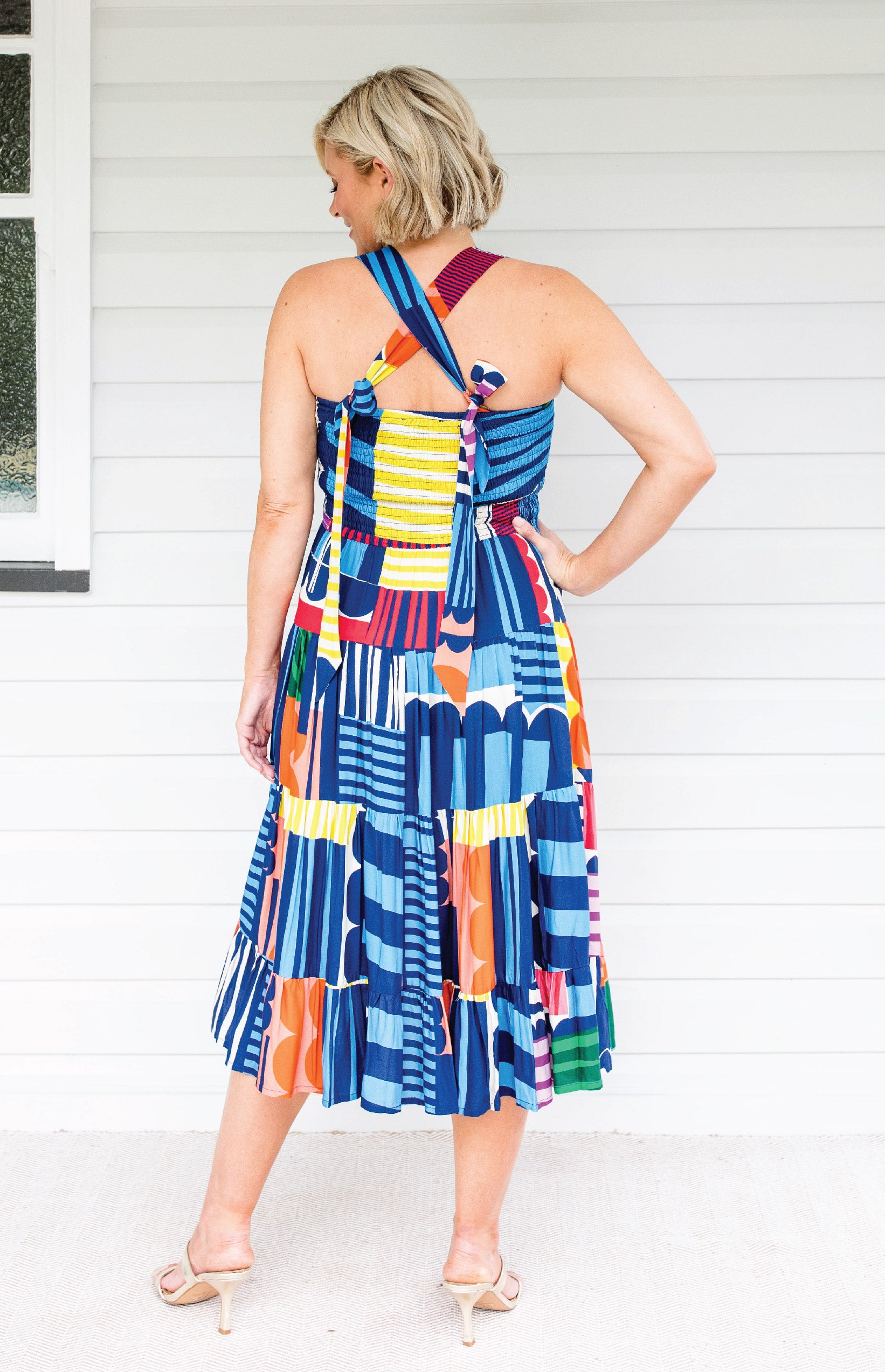 Florida is just like a transformer, but in fashion form. You can wear her as a fabulous dress with the ties on the shoulders, or tuck them in and wear it as a skirt - magic! She features a shirred band, and tiered flowing skirt.