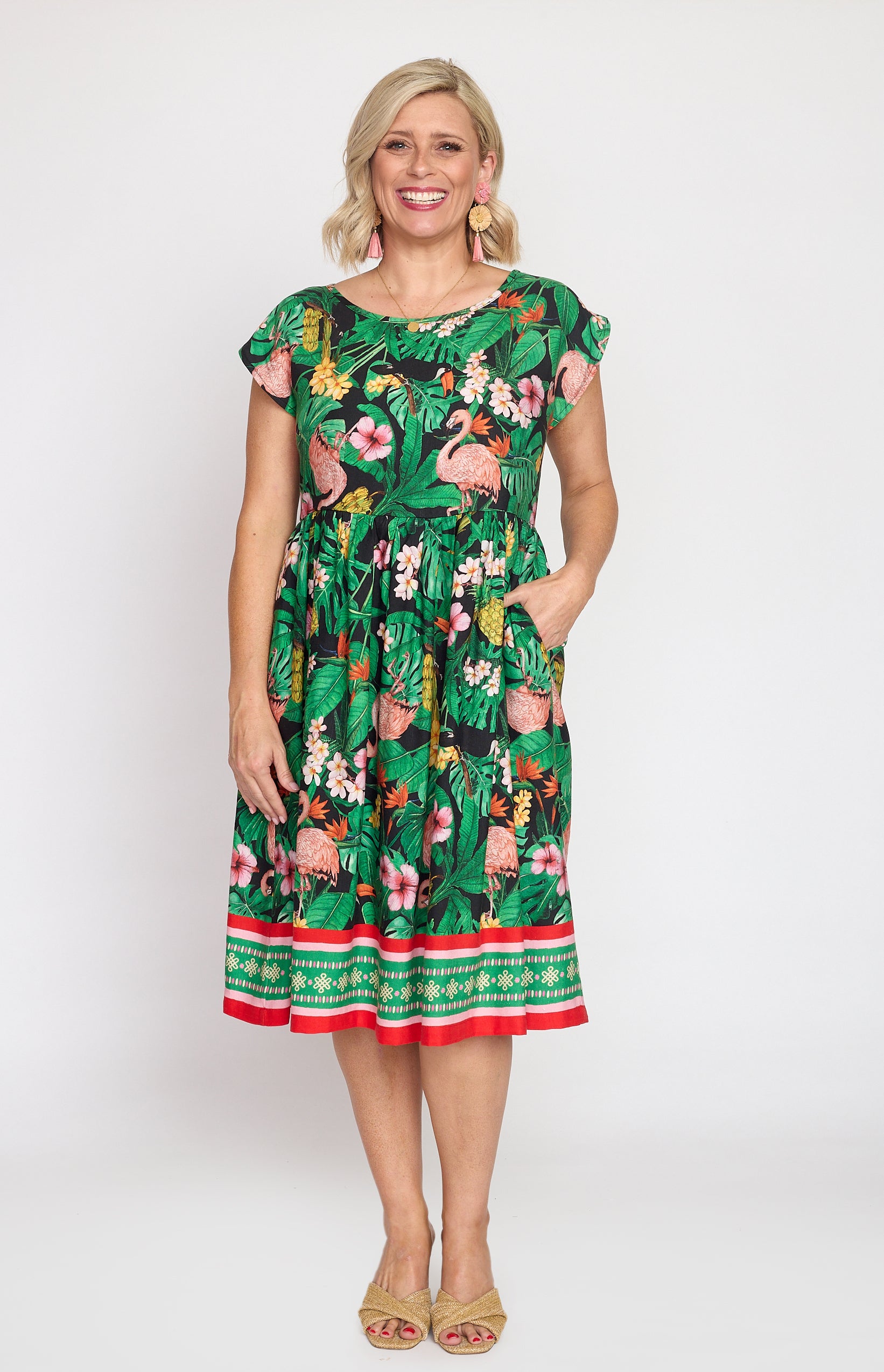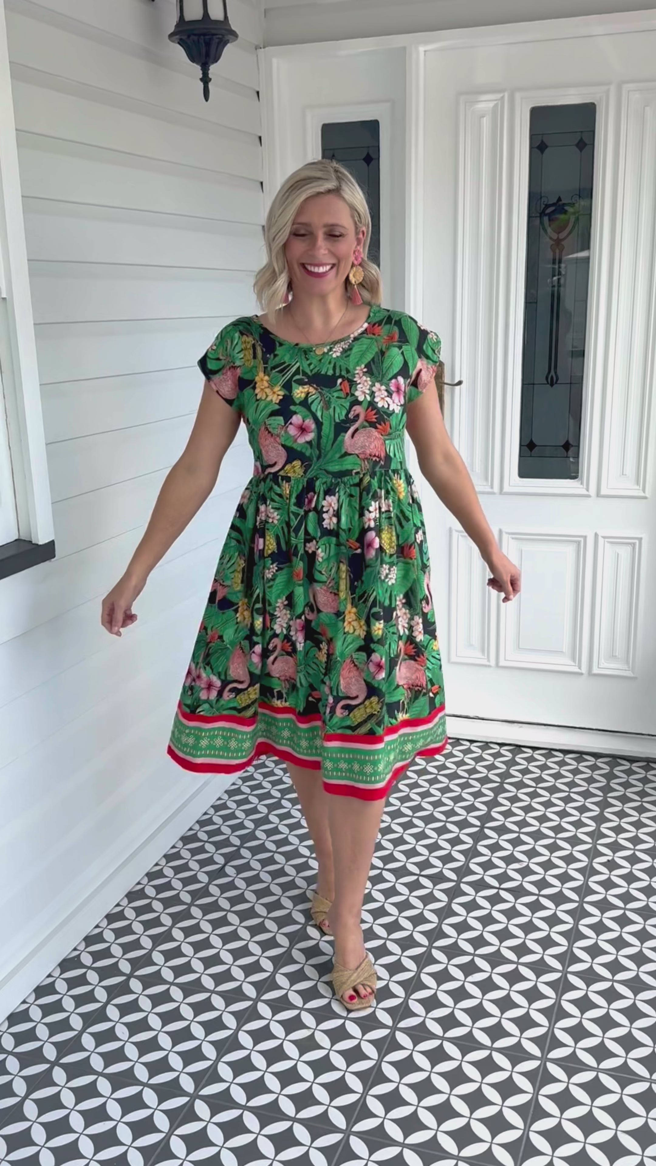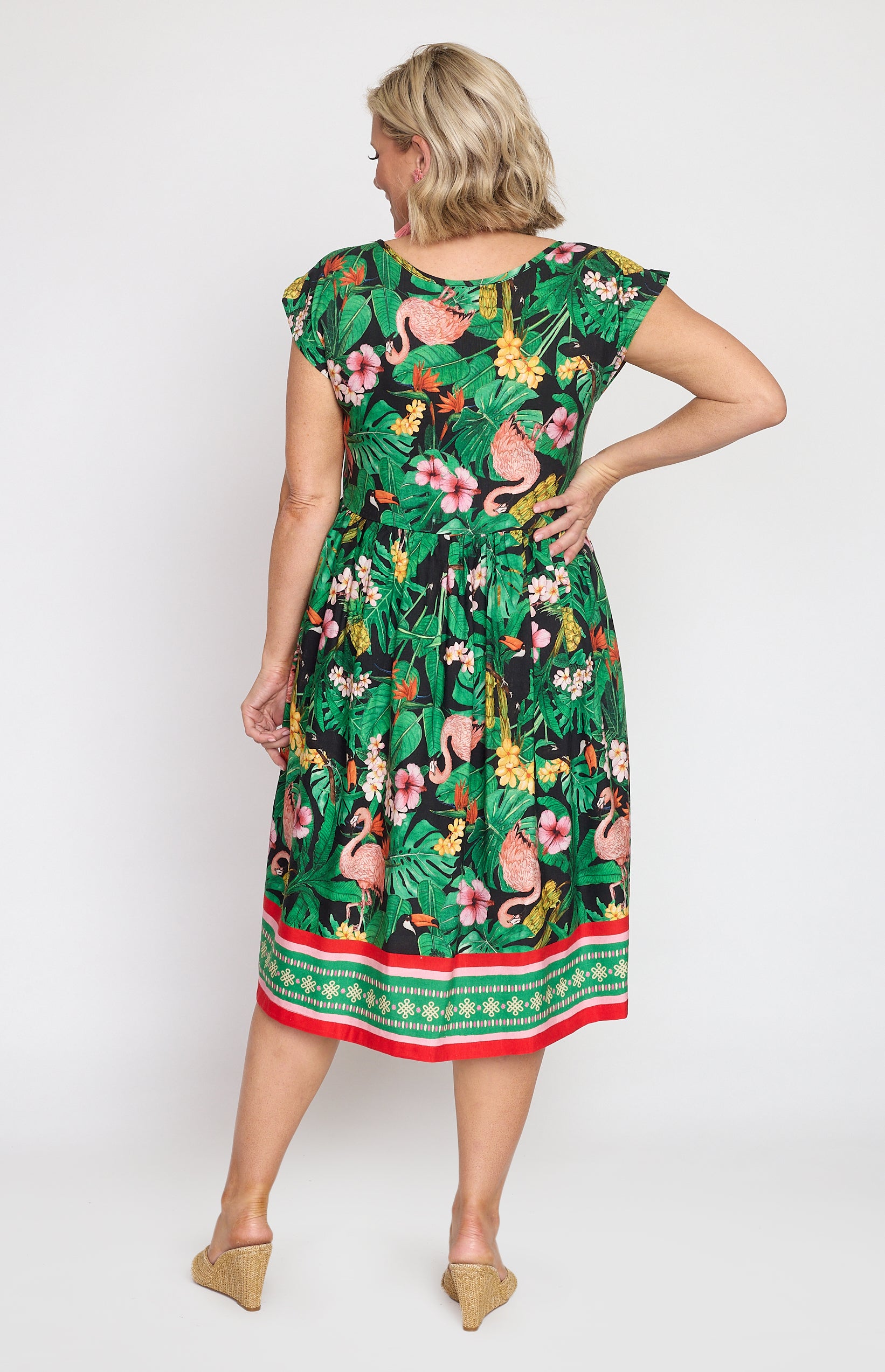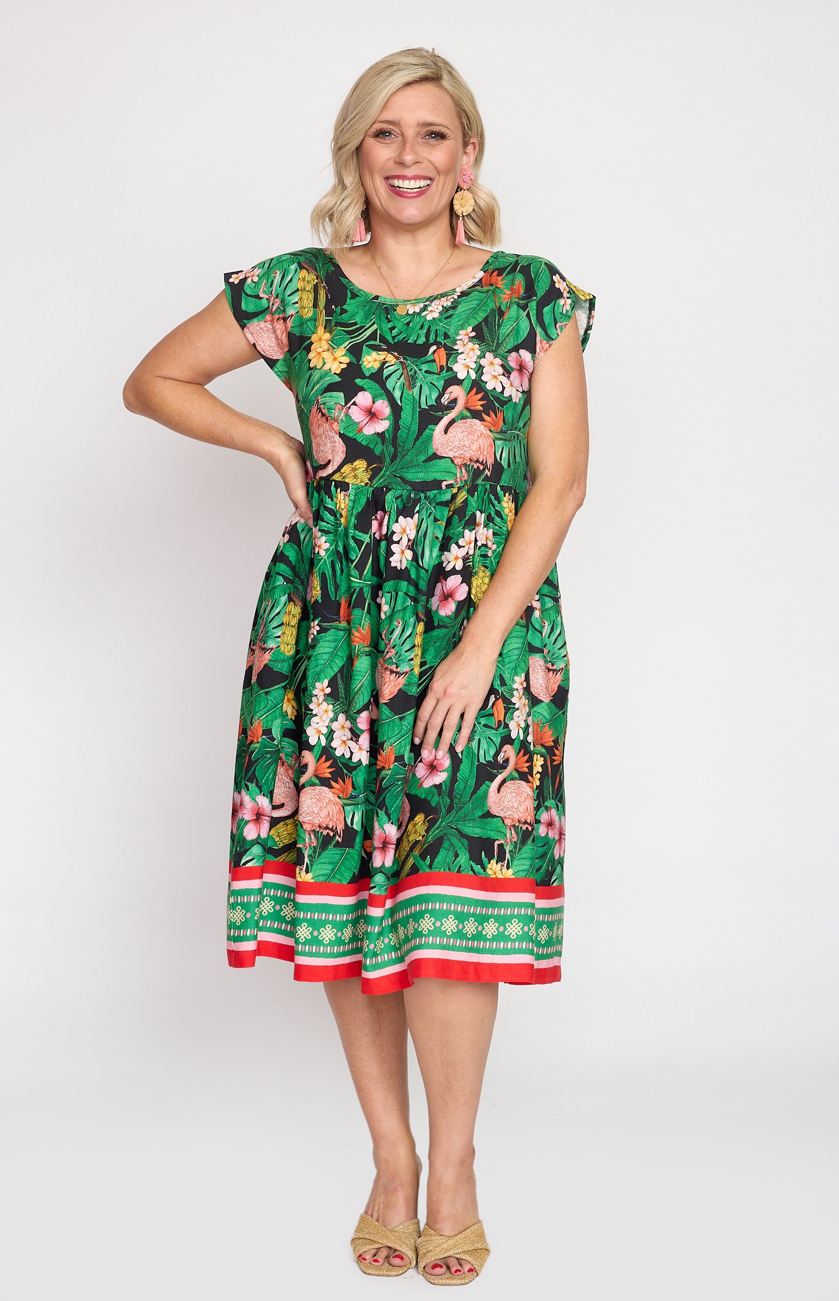 Our Holiday Dress is made to throw on over your togs with thongs, but she is fancy enough that you can pop on a pair of wedges and take her out to lunch. She also likes to wander the weekend markets, and she looks great with a pair of sneakers.