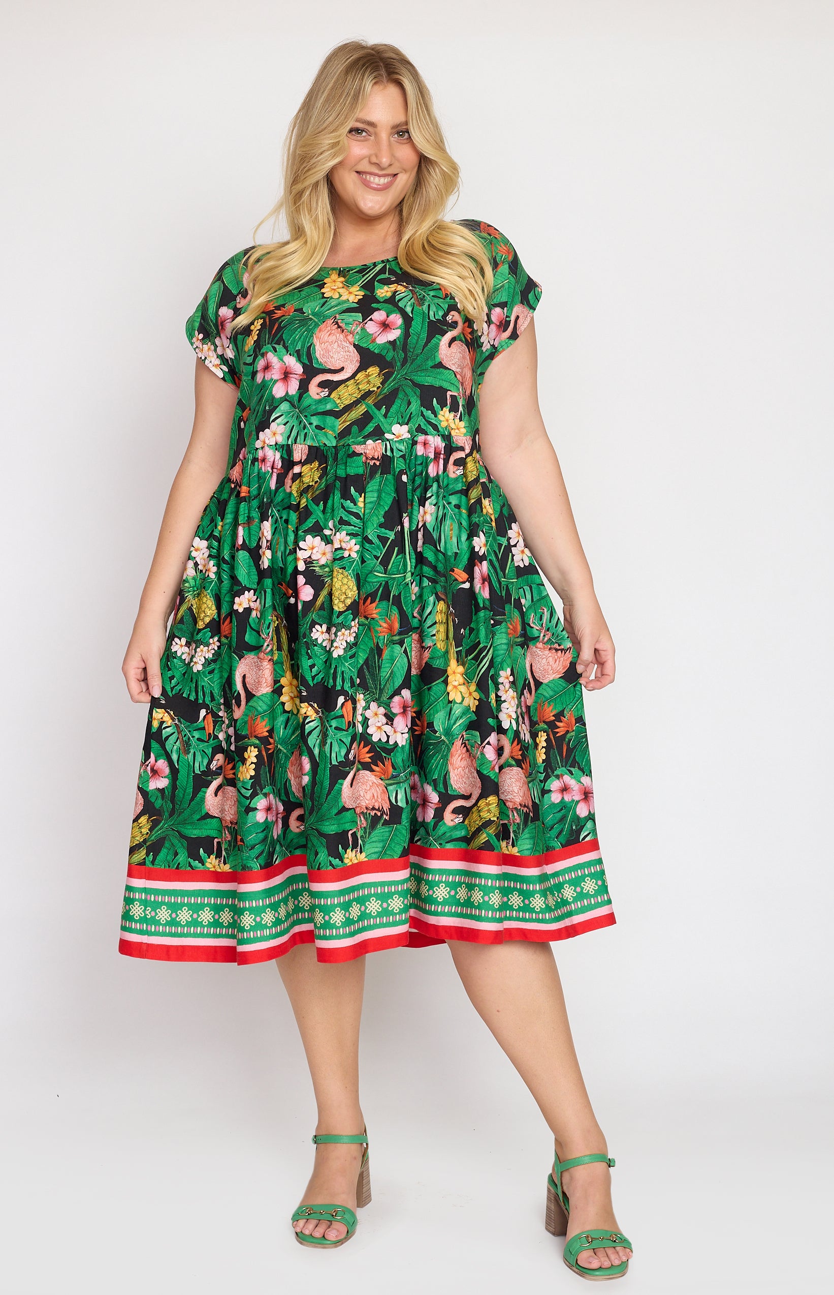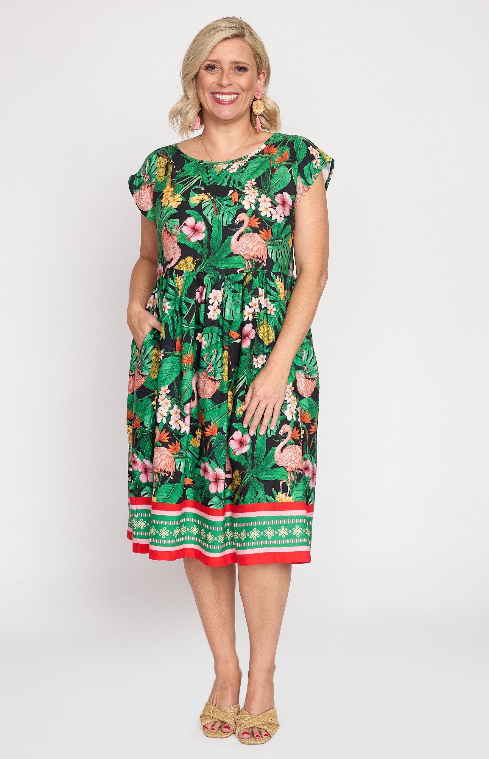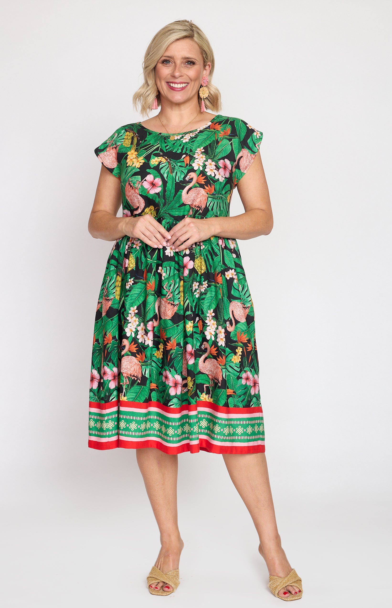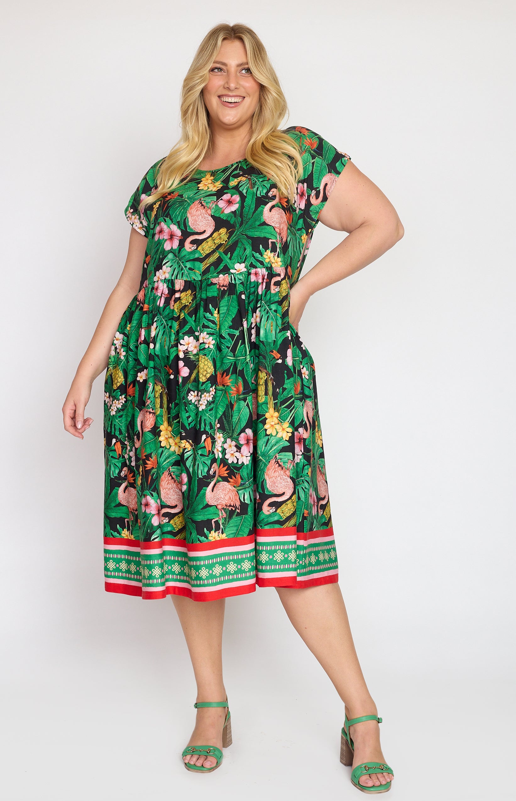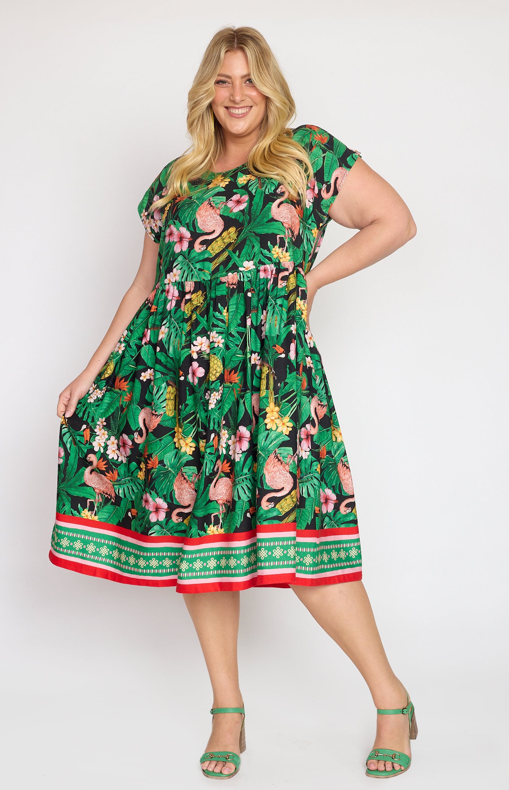 Our Holiday Dress is made to throw on over your togs with thongs, but she is fancy enough that you can pop on a pair of wedges and take her out to lunch. She also likes to wander the weekend markets, and she looks great with a pair of sneakers.