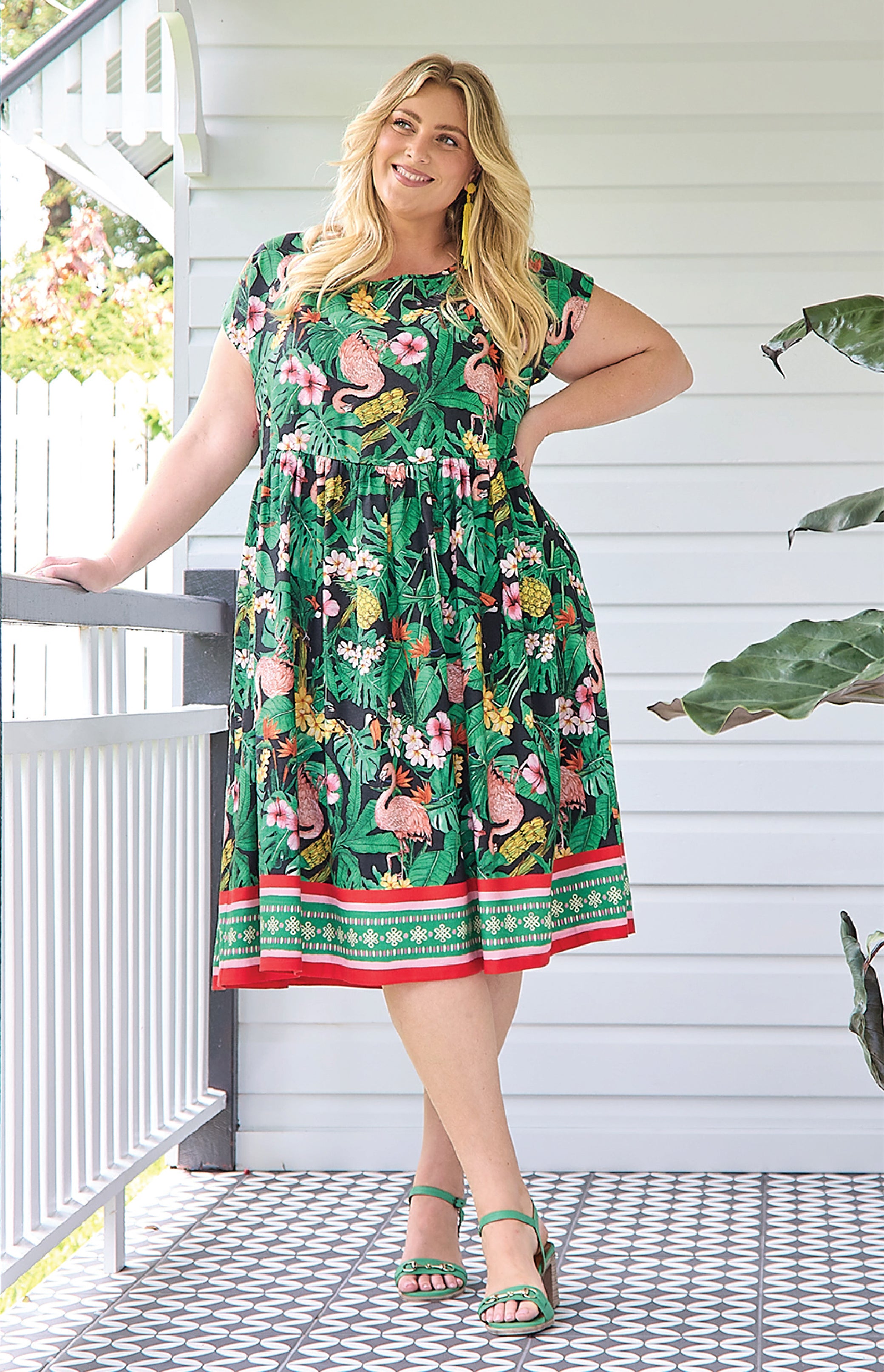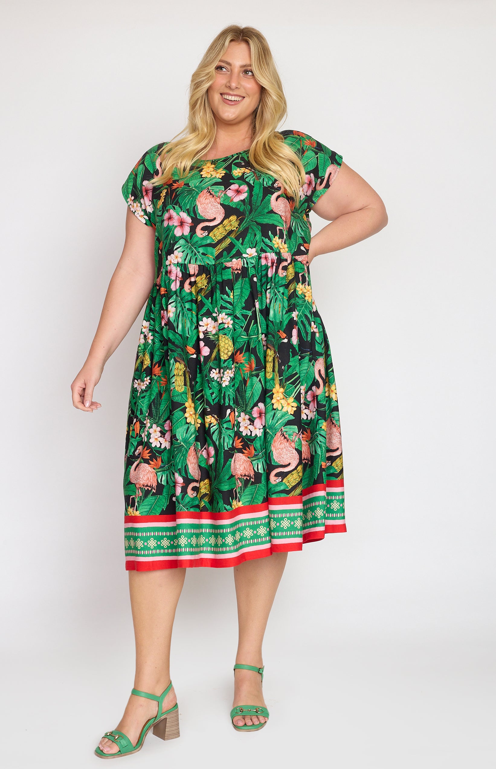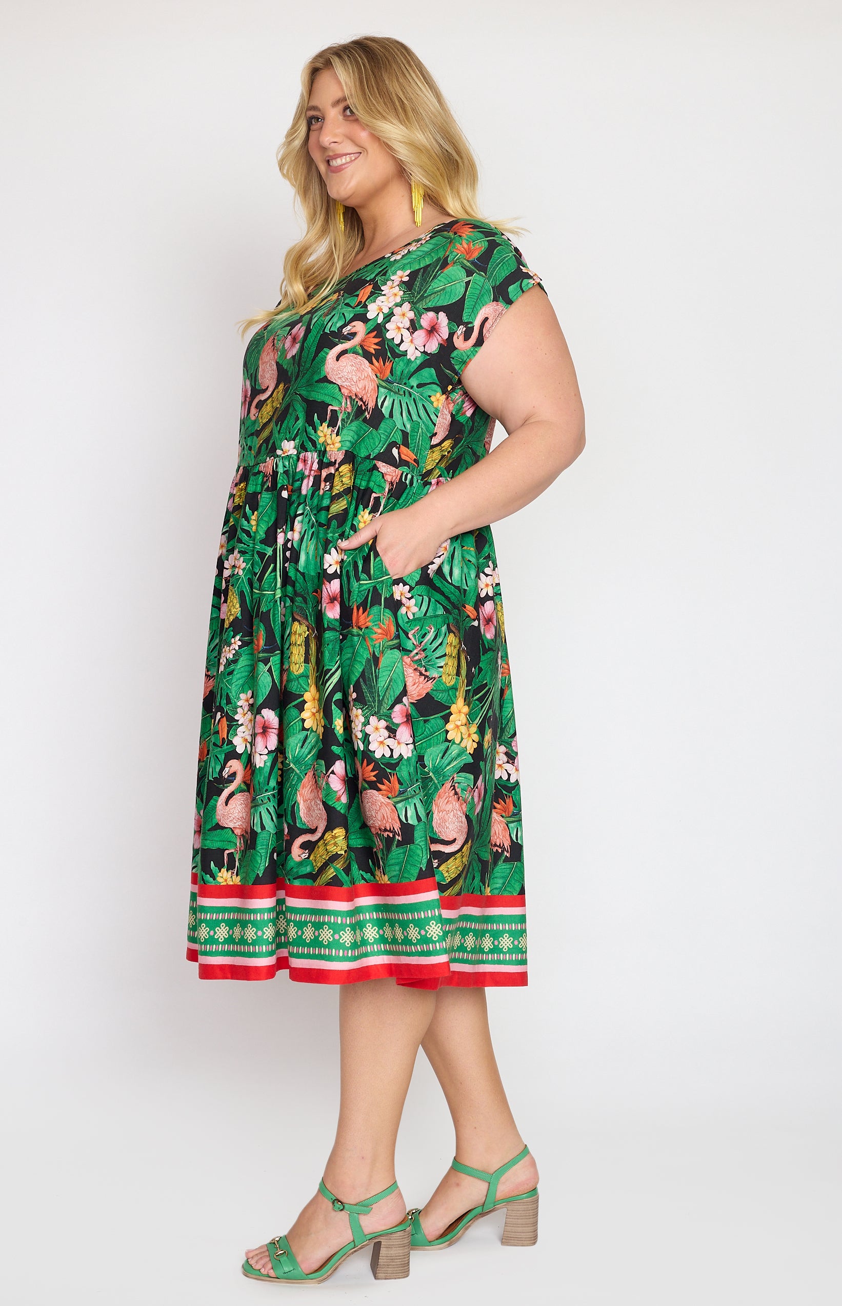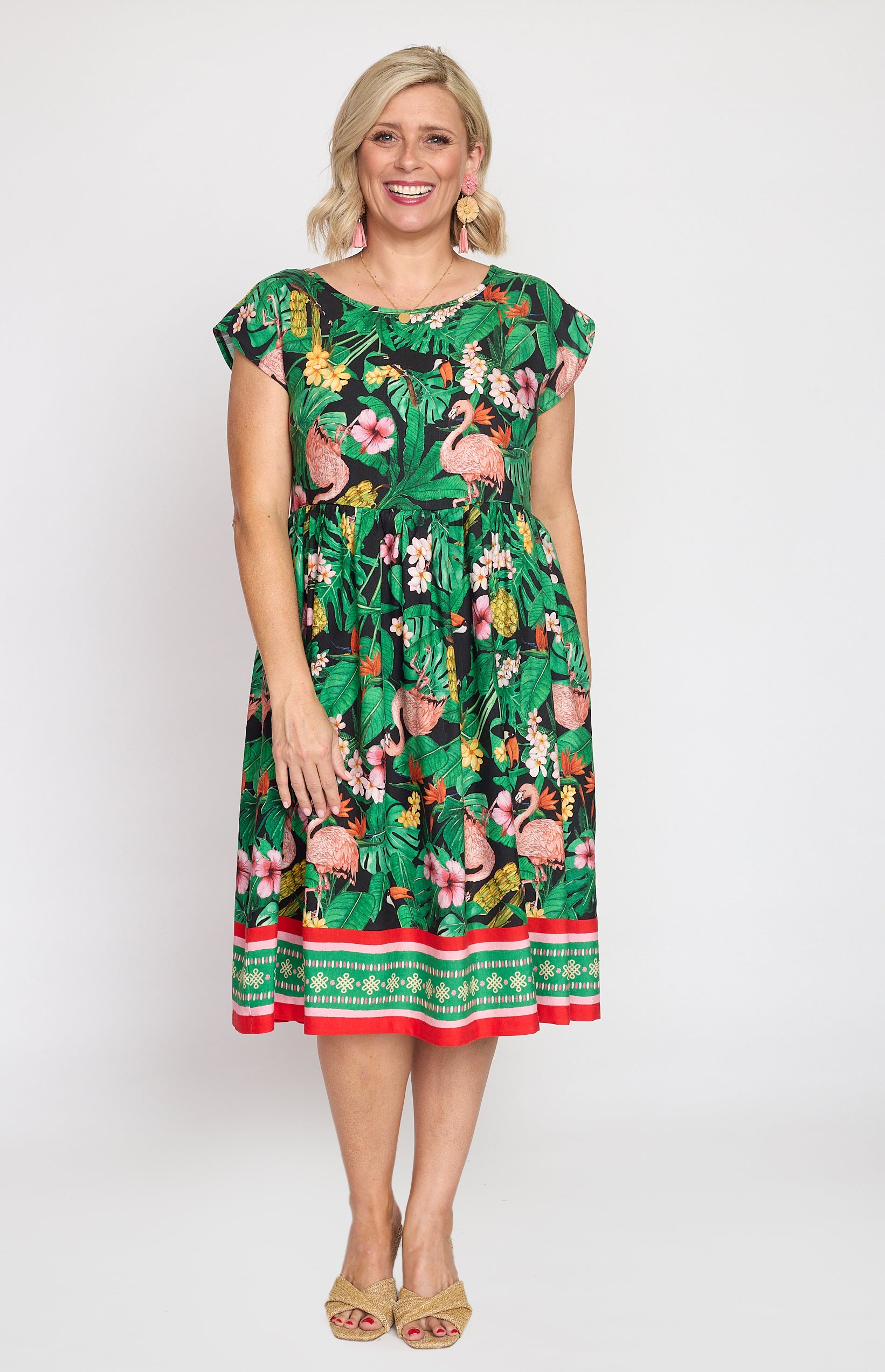 Our Holiday Dress is made to throw on over your togs with thongs, but she is fancy enough that you can pop on a pair of wedges and take her out to lunch. She also likes to wander the weekend markets, and she looks great with a pair of sneakers.