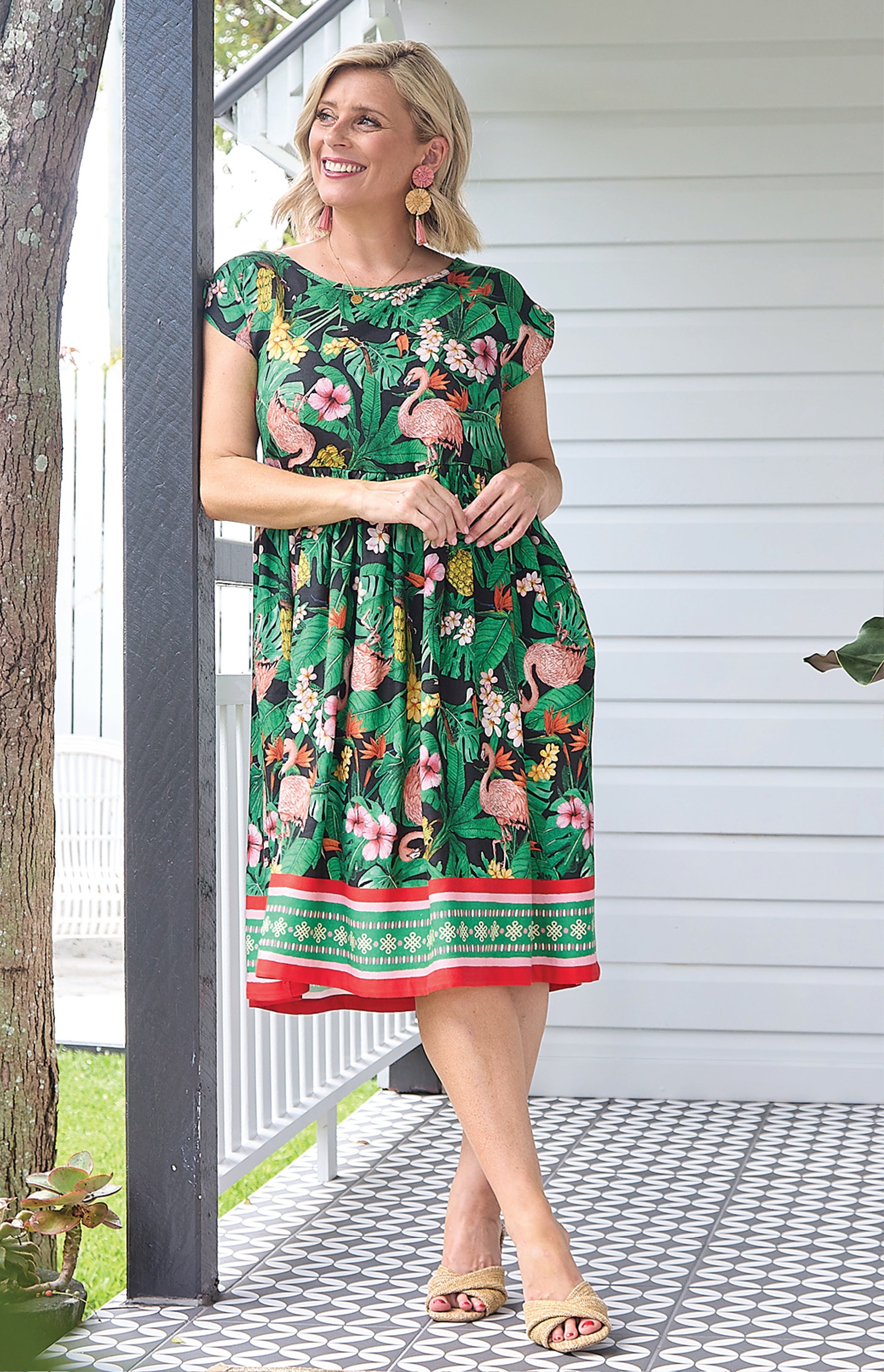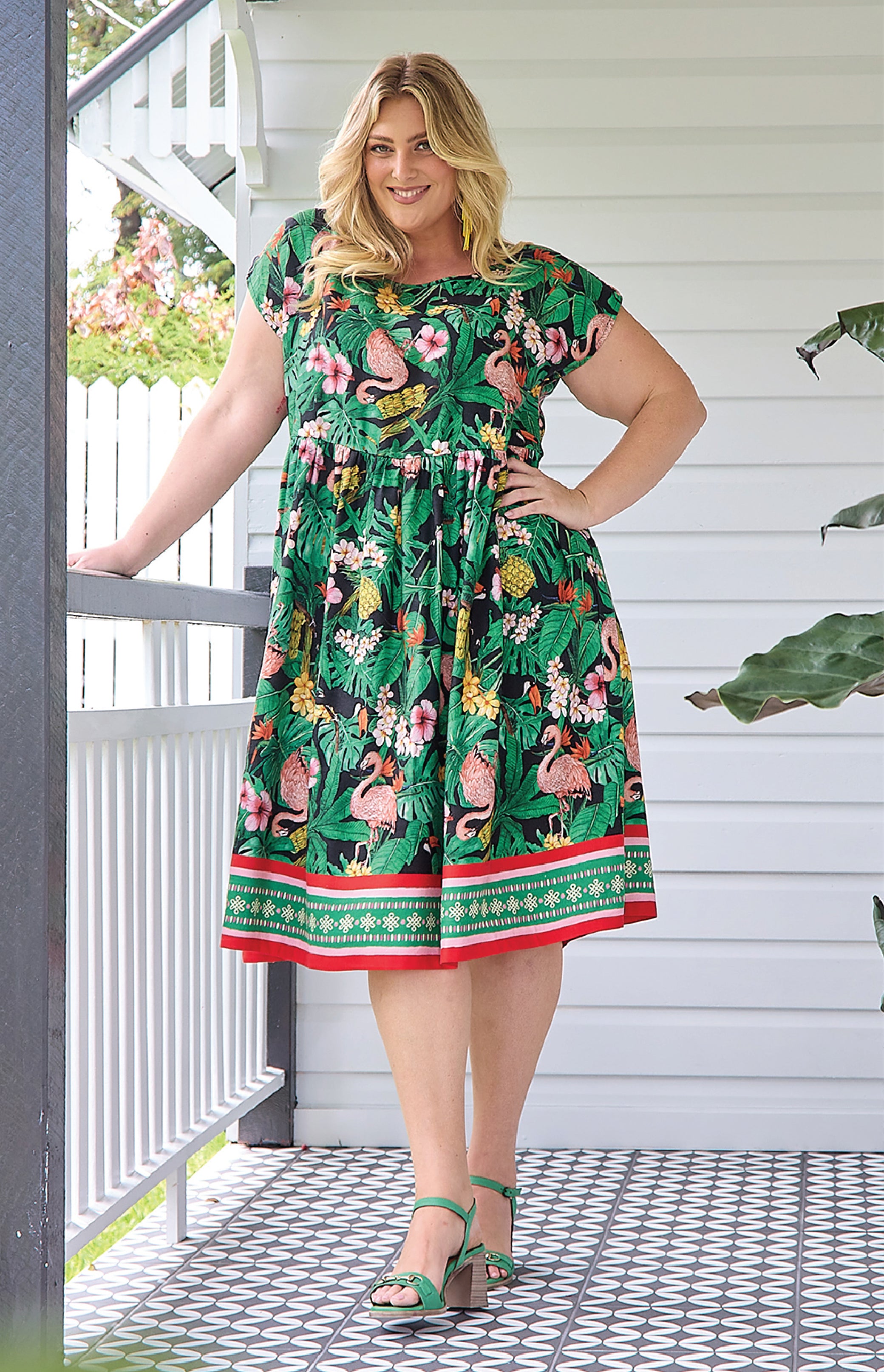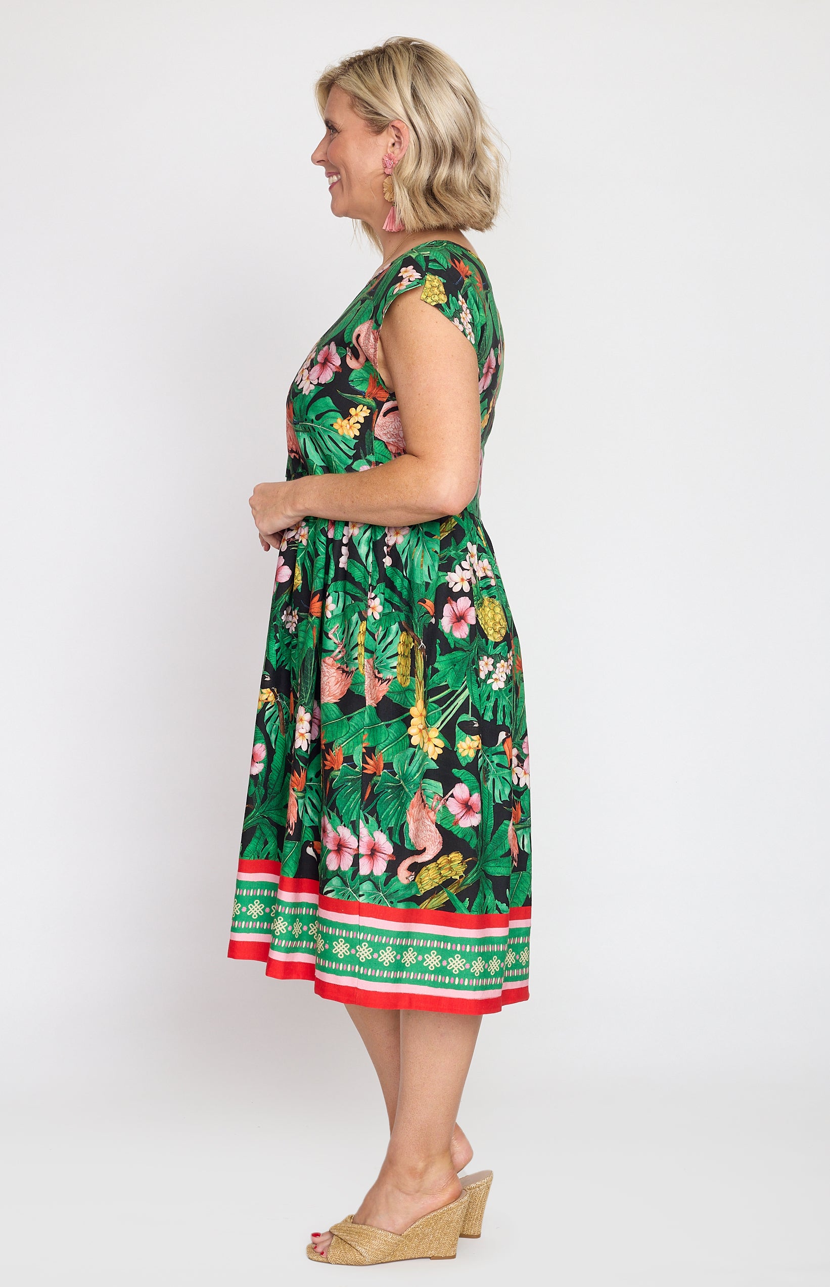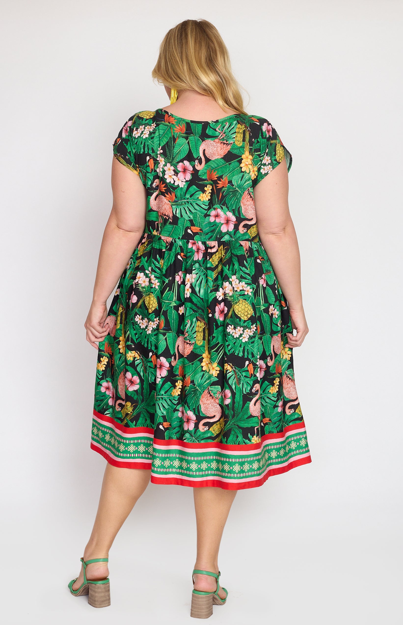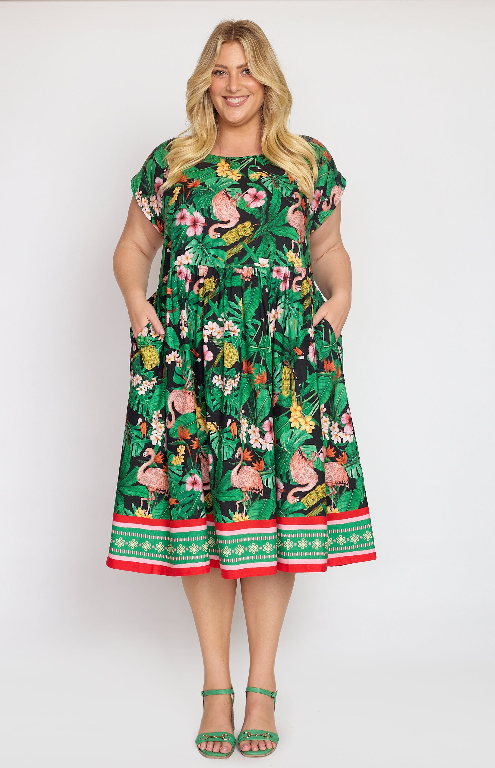 Our Holiday Dress is made to throw on over your togs with thongs, but she is fancy enough that you can pop on a pair of wedges and take her out to lunch. She also likes to wander the weekend markets, and she looks great with a pair of sneakers.