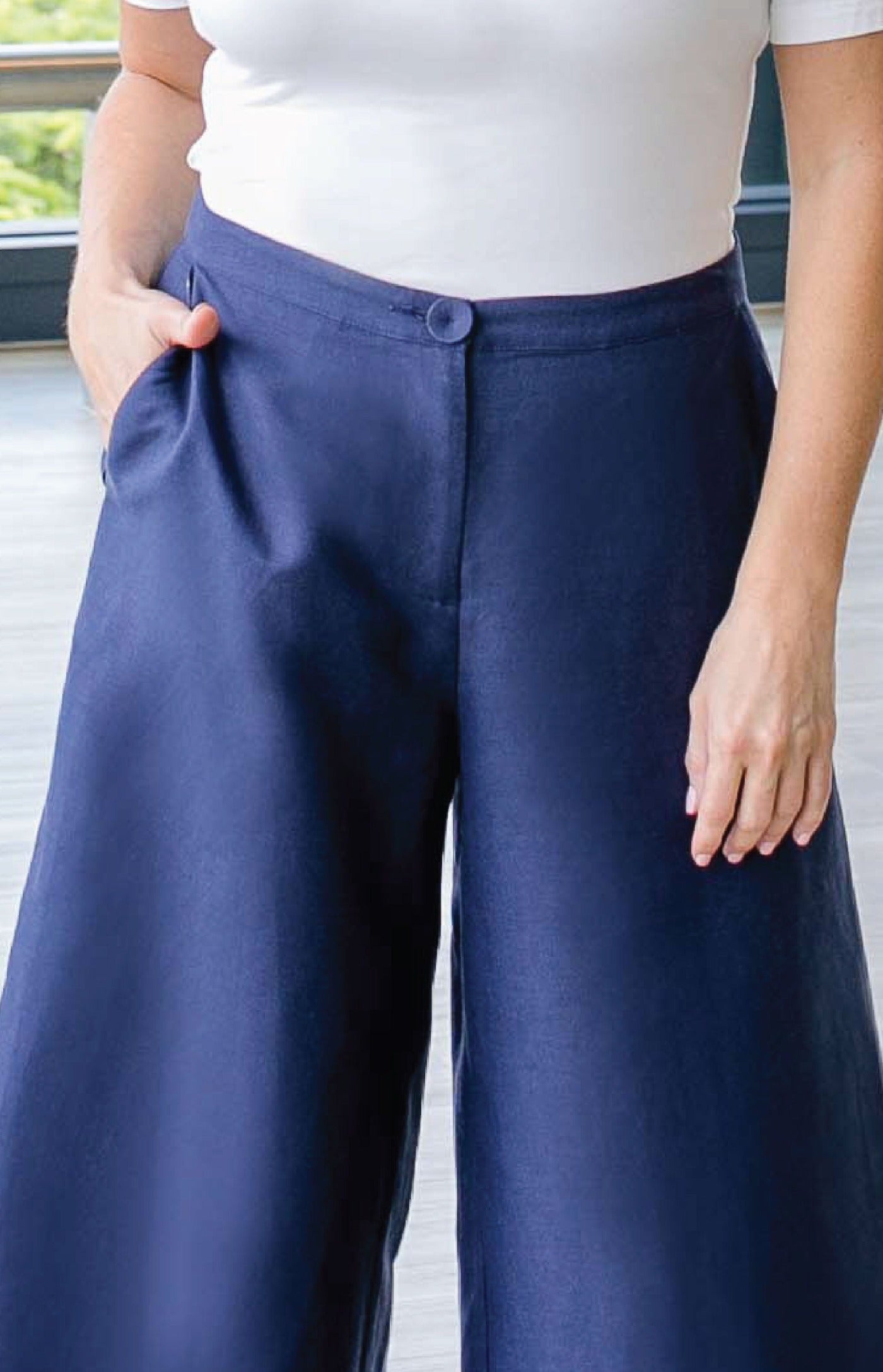 Step out in style and comfort in the Jane, she is the perfect wear anywhere pant, with her wide cropped leg. These ones have a contrast printed waistband and pocket lining.