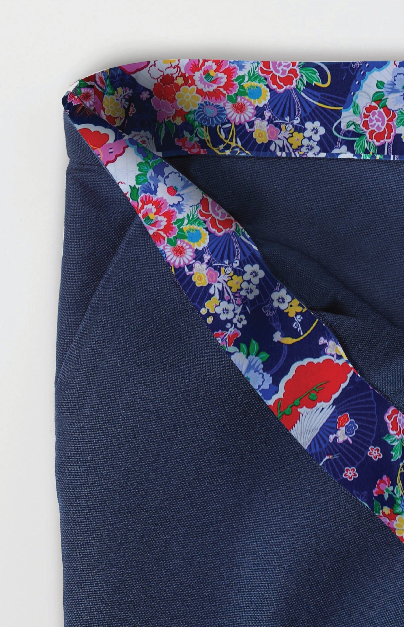Pockets and waistband in contrast printed lining