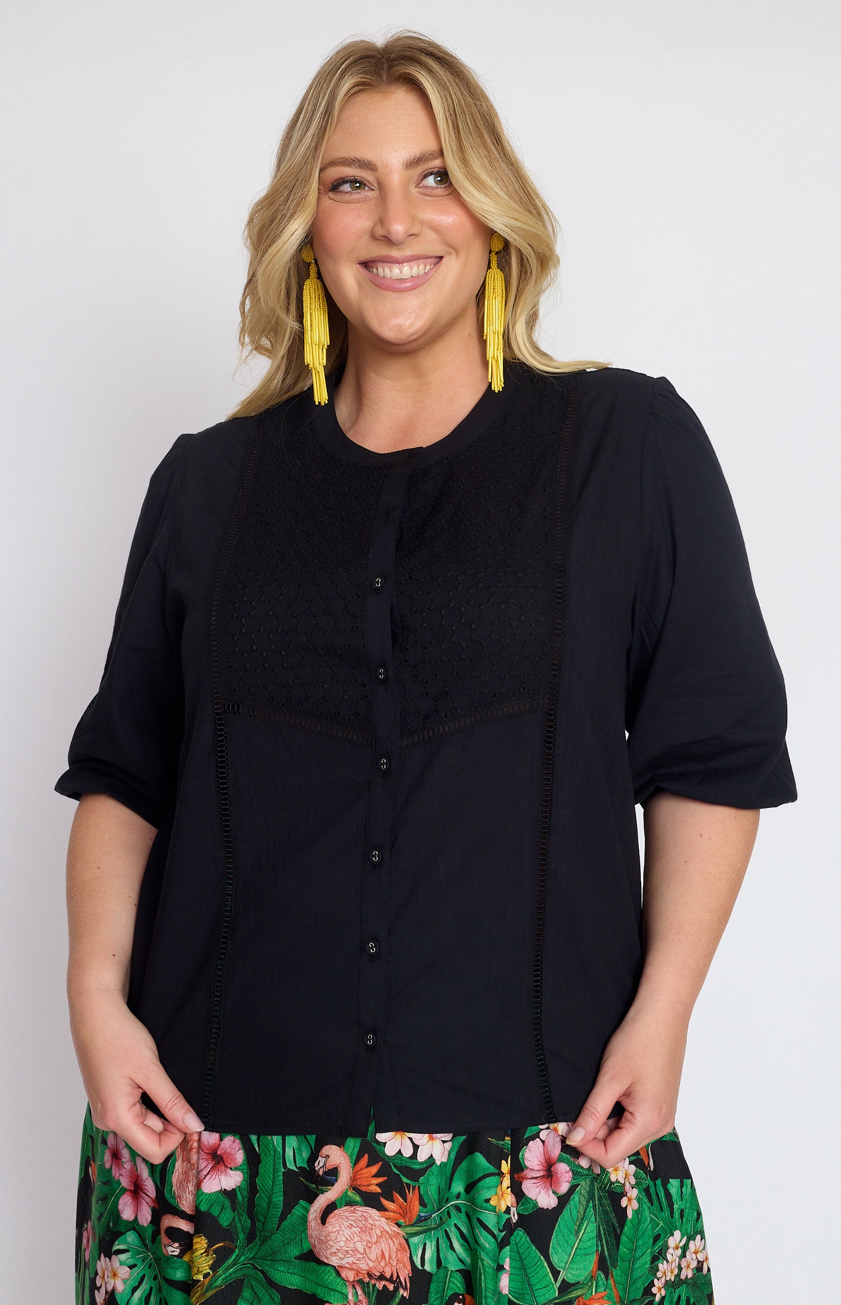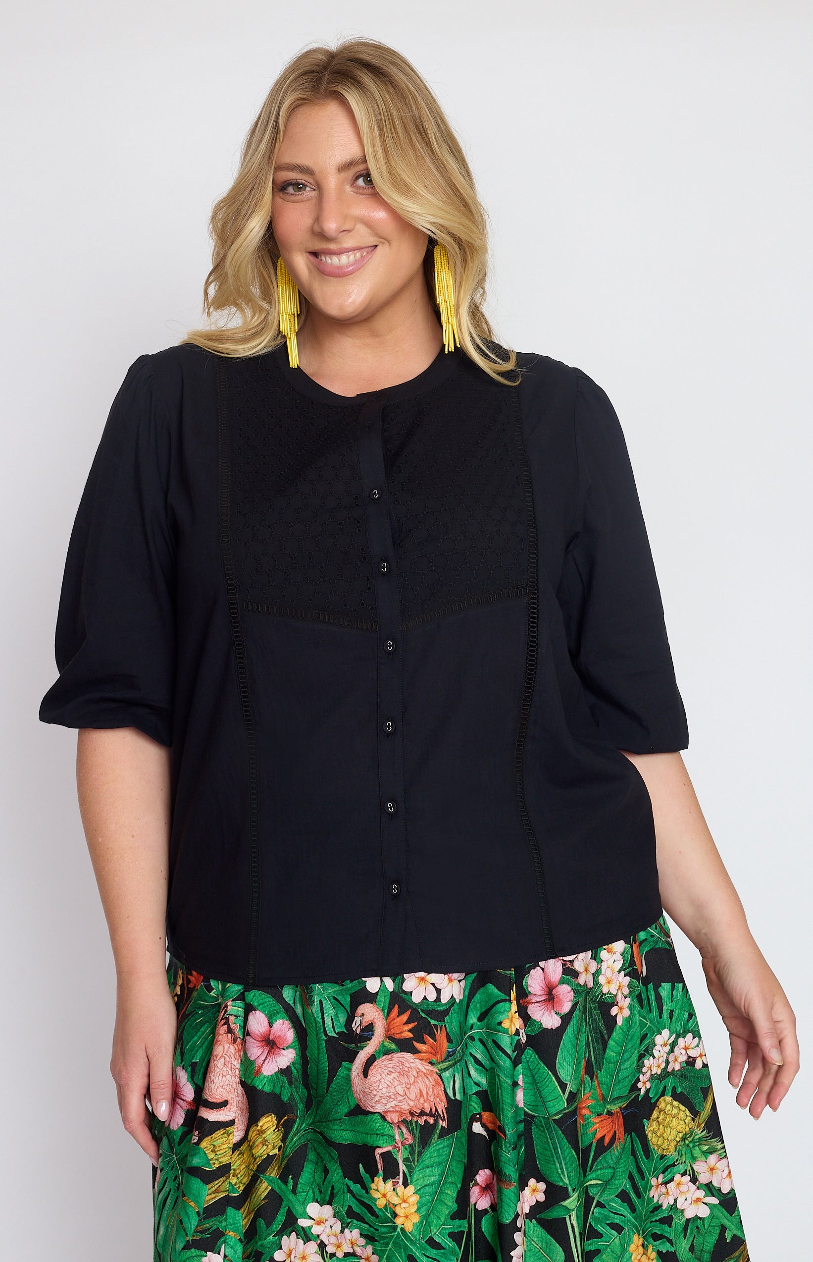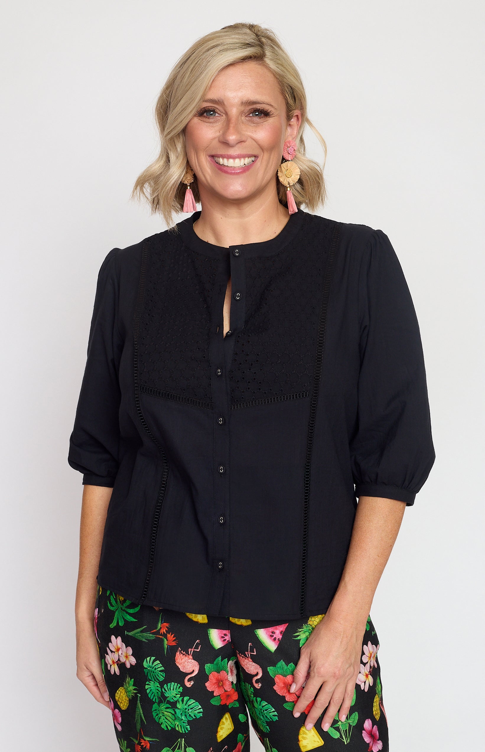 The ladder lace, black broderie detail & luxe cotton fabric... there is so much to love about this blouse xo