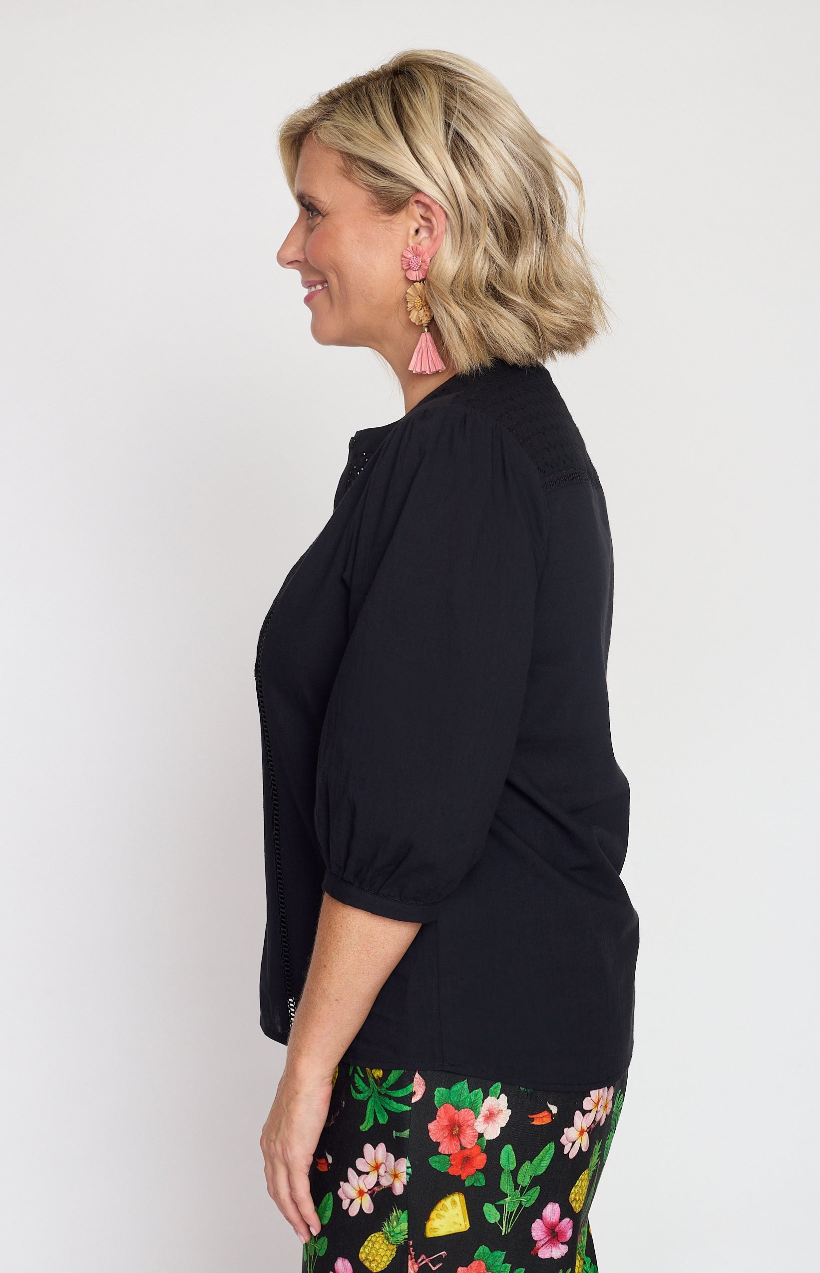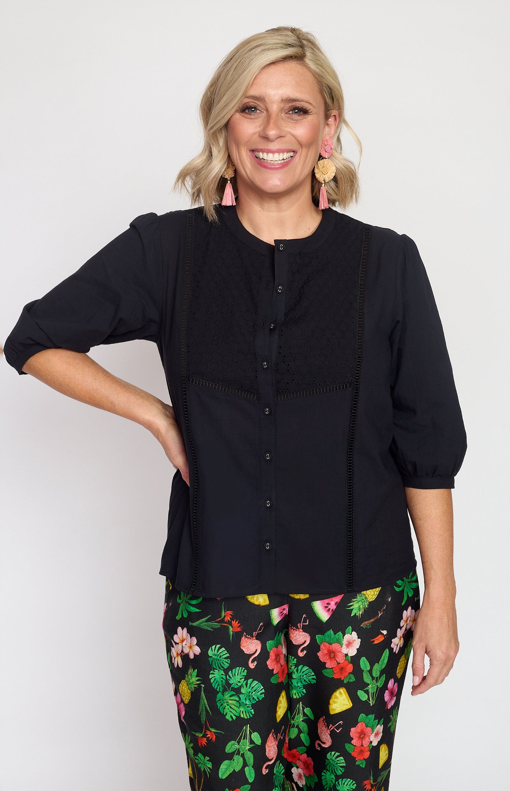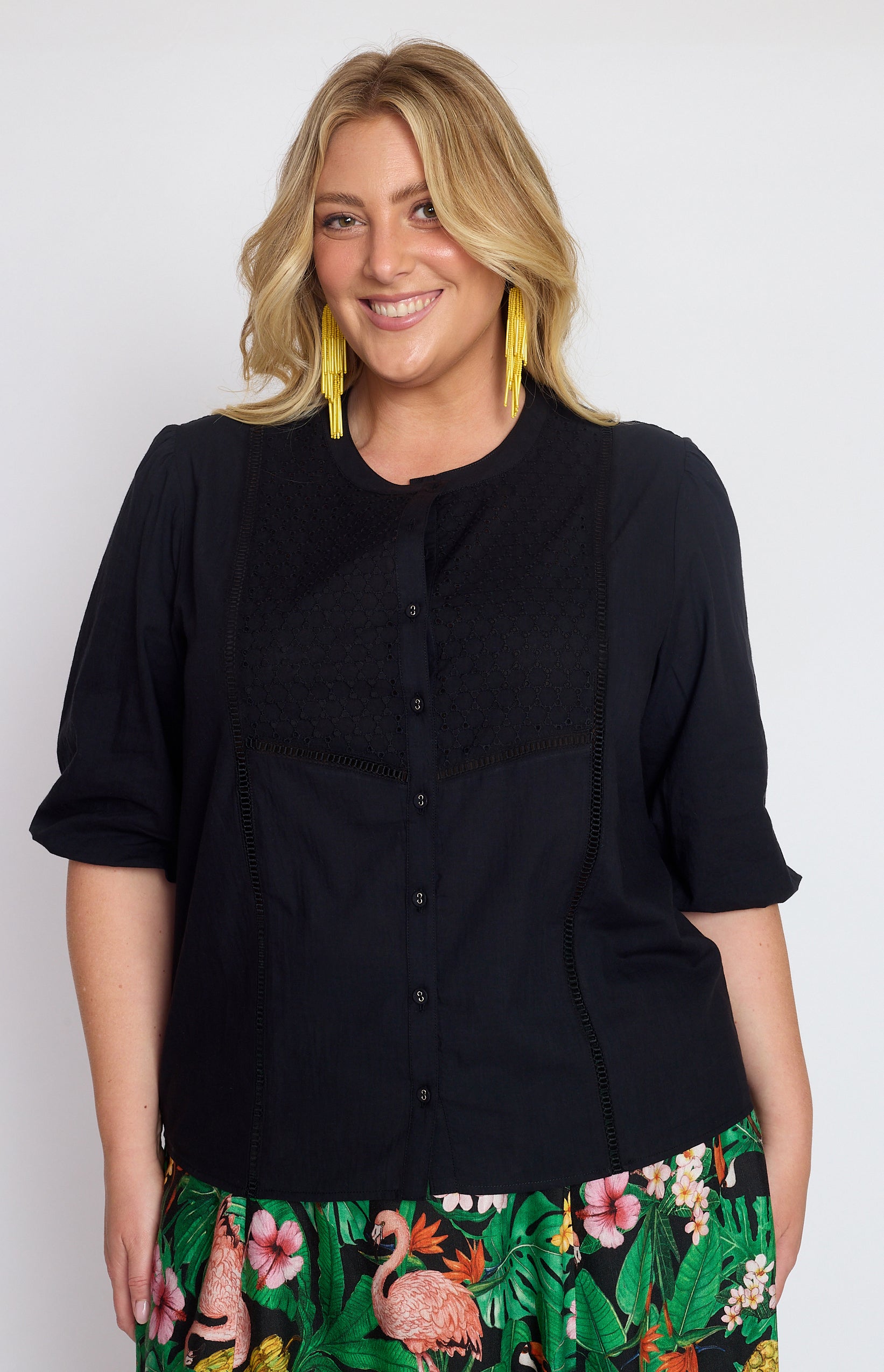 The ladder lace, black broderie detail & luxe cotton fabric... there is so much to love about this blouse xo