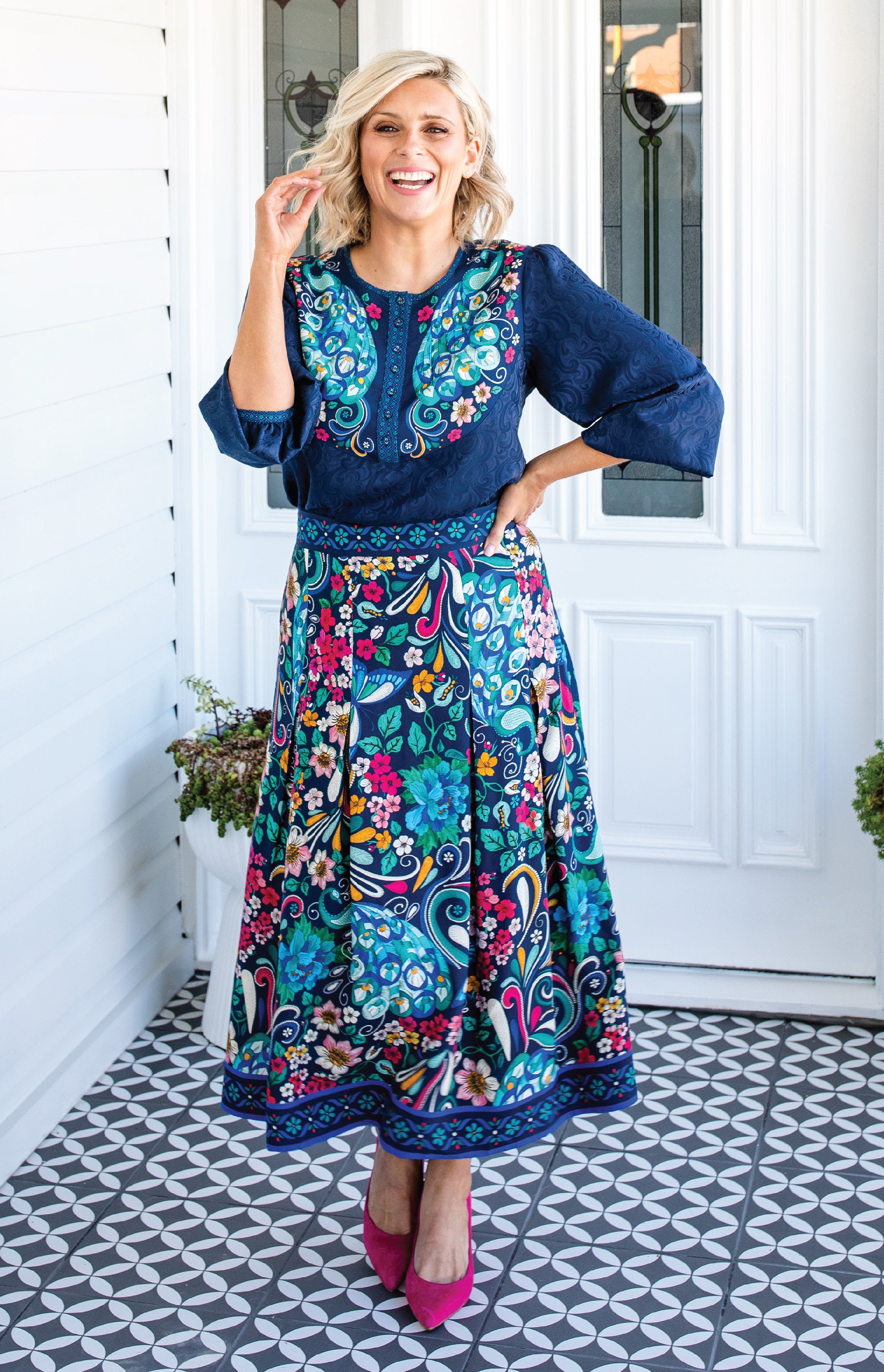 Our Designer Deanne (blonde) is wearing size 8. Her bust is 97cm; Waist 80cm; Hip: 103cm.