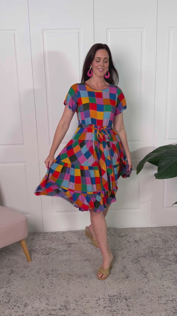 Lola Dress in name dropper gingham