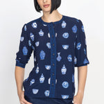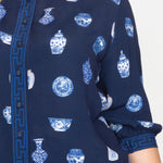Featuring exclusive hand-painted artwork by Brisbane artist Michelle Grayson, and a contrast cuff and trim design, this blouse is Maiocchi magic through and through.