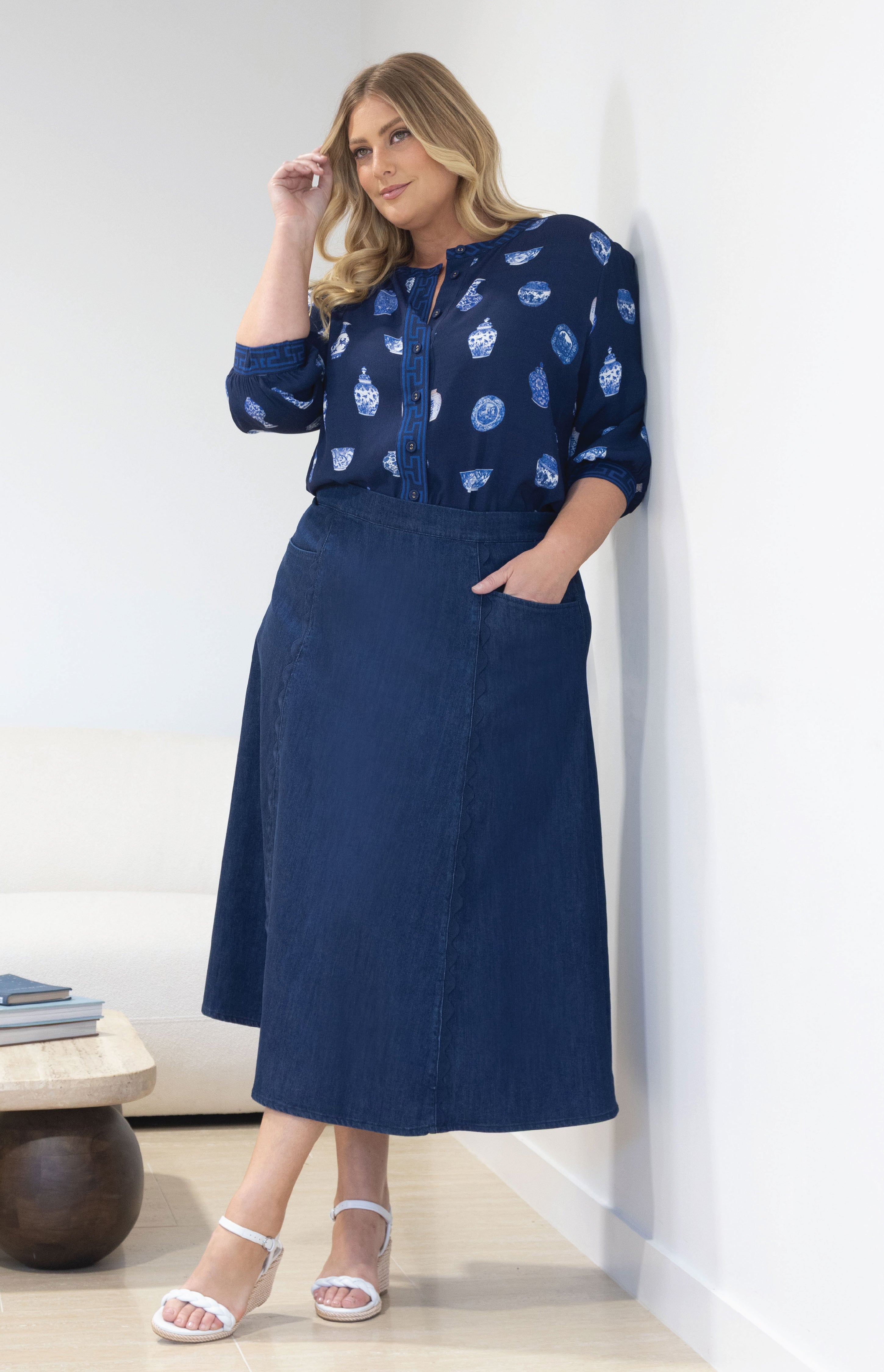 This blouse is cut to be more fitted, but if you prefer an oversized shirt look, just get a bigger size. We have actual garment measurements on the size chart.