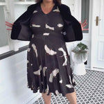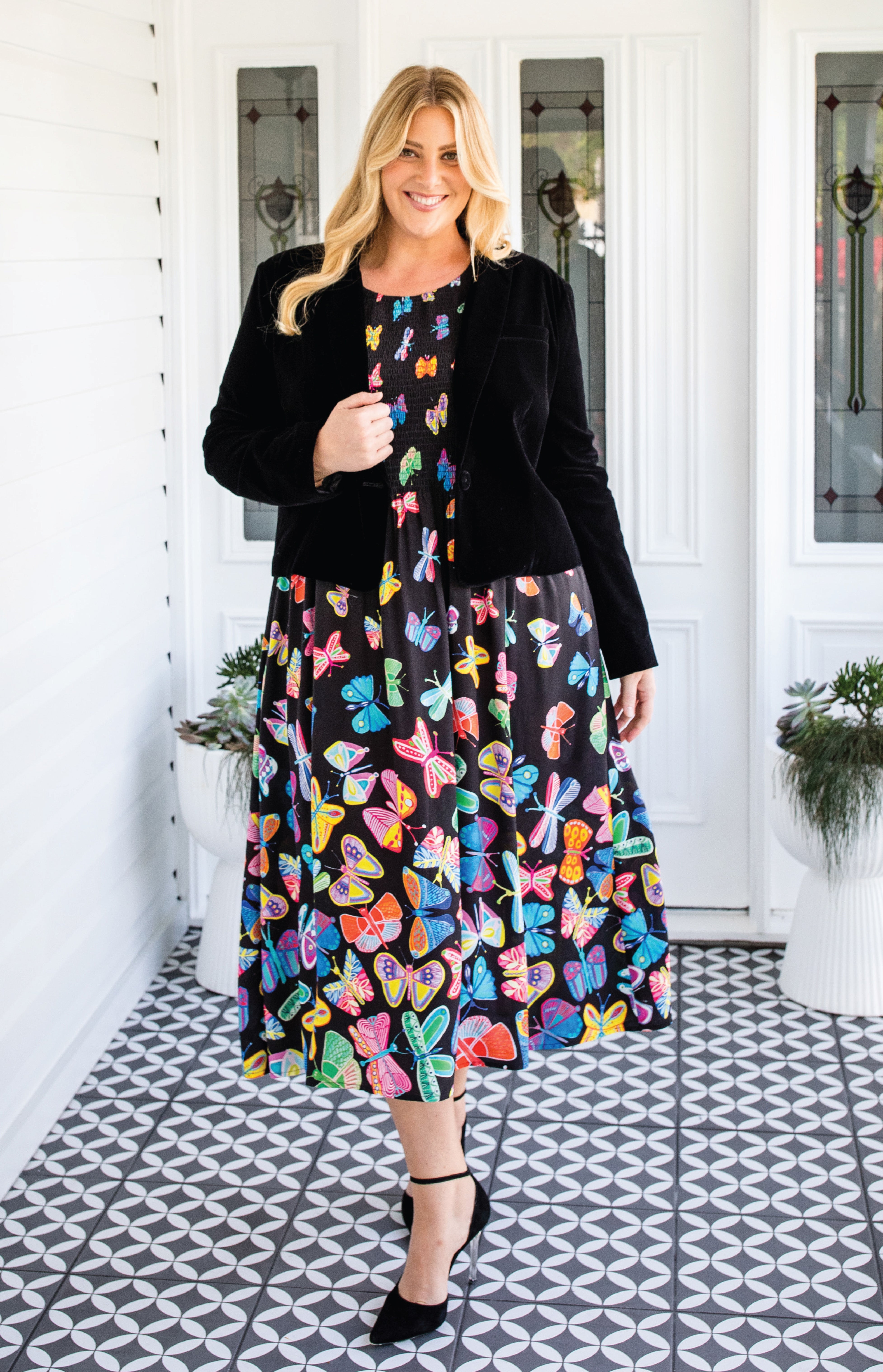 Our Designer Deanne (blonde) is wearing size 8. Her bust is 97cm; Waist 80cm; Hip: 103cm, and she is 162cm tall.