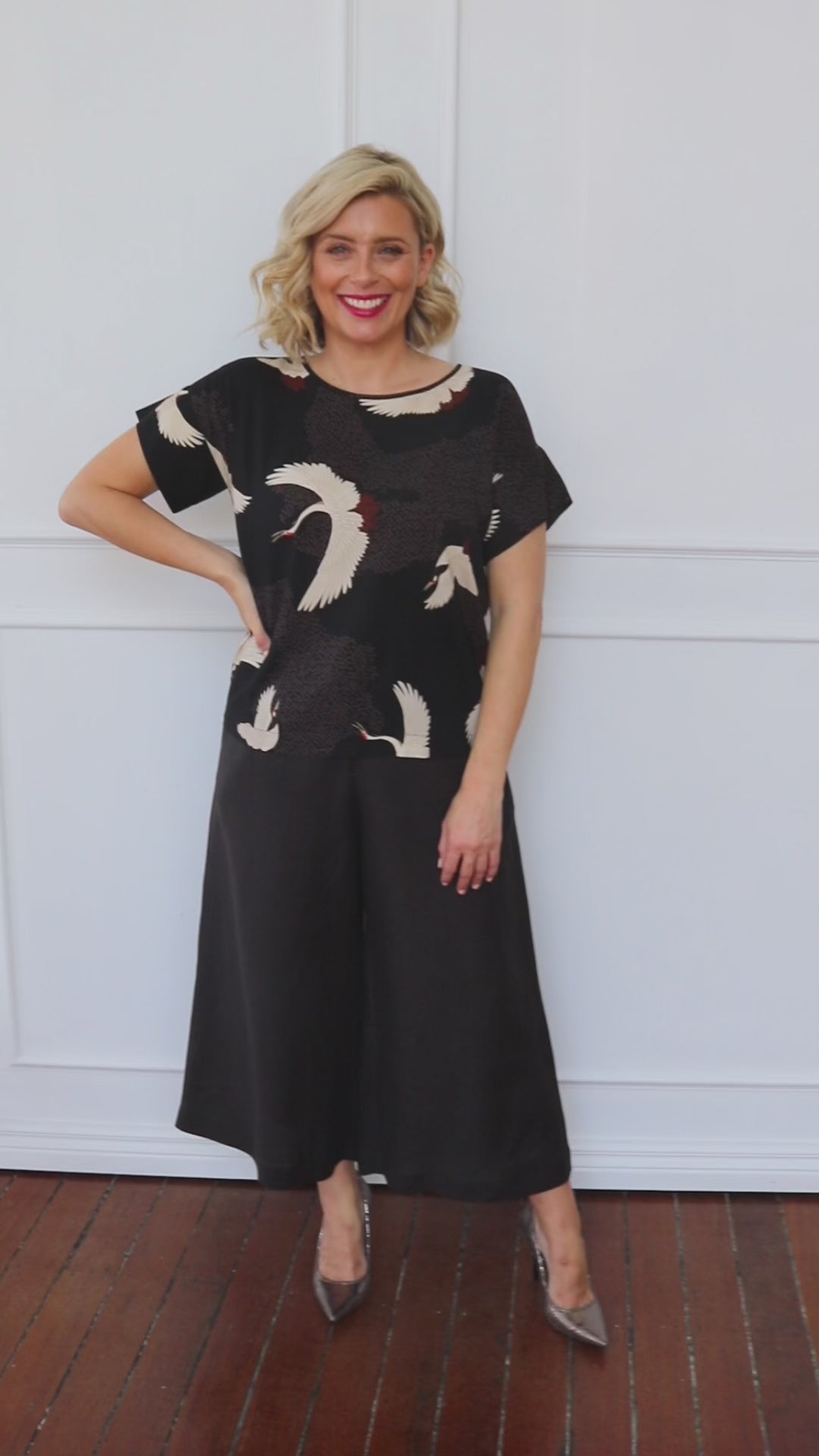 Our iconic crane print brings a little drama, a little elegance, and just the right amount of swoon.