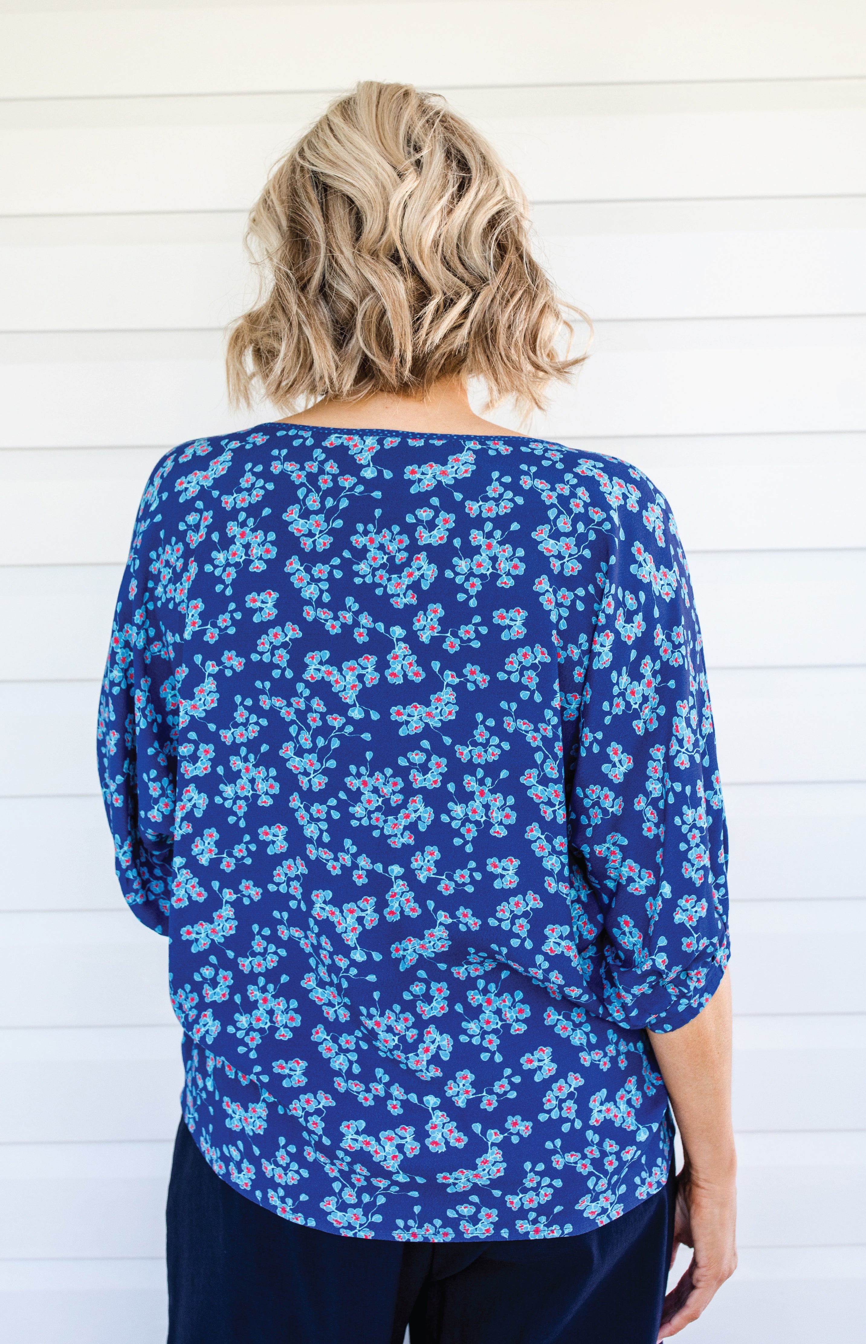 Pretty Please Reversible Top in cherry blossom blue
