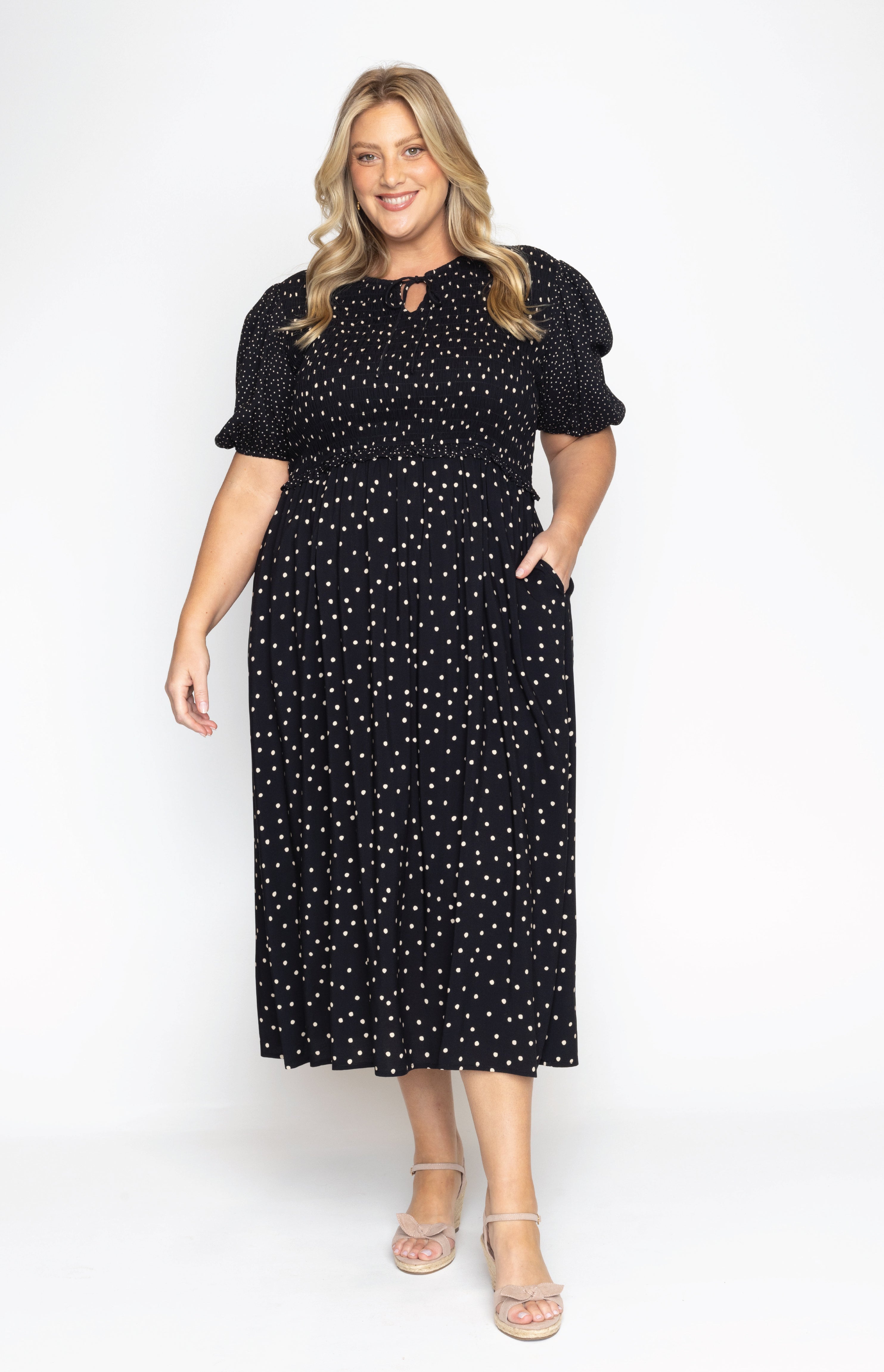 Say hello to our new Seychelles Dress... a timeless silhouette with thoughtful details. She has a comfortable shirred bodice, a little tie at the neckline, soft spots and feminine puffed sleeves. Lightweight, comfortable, and of course she has pockets!