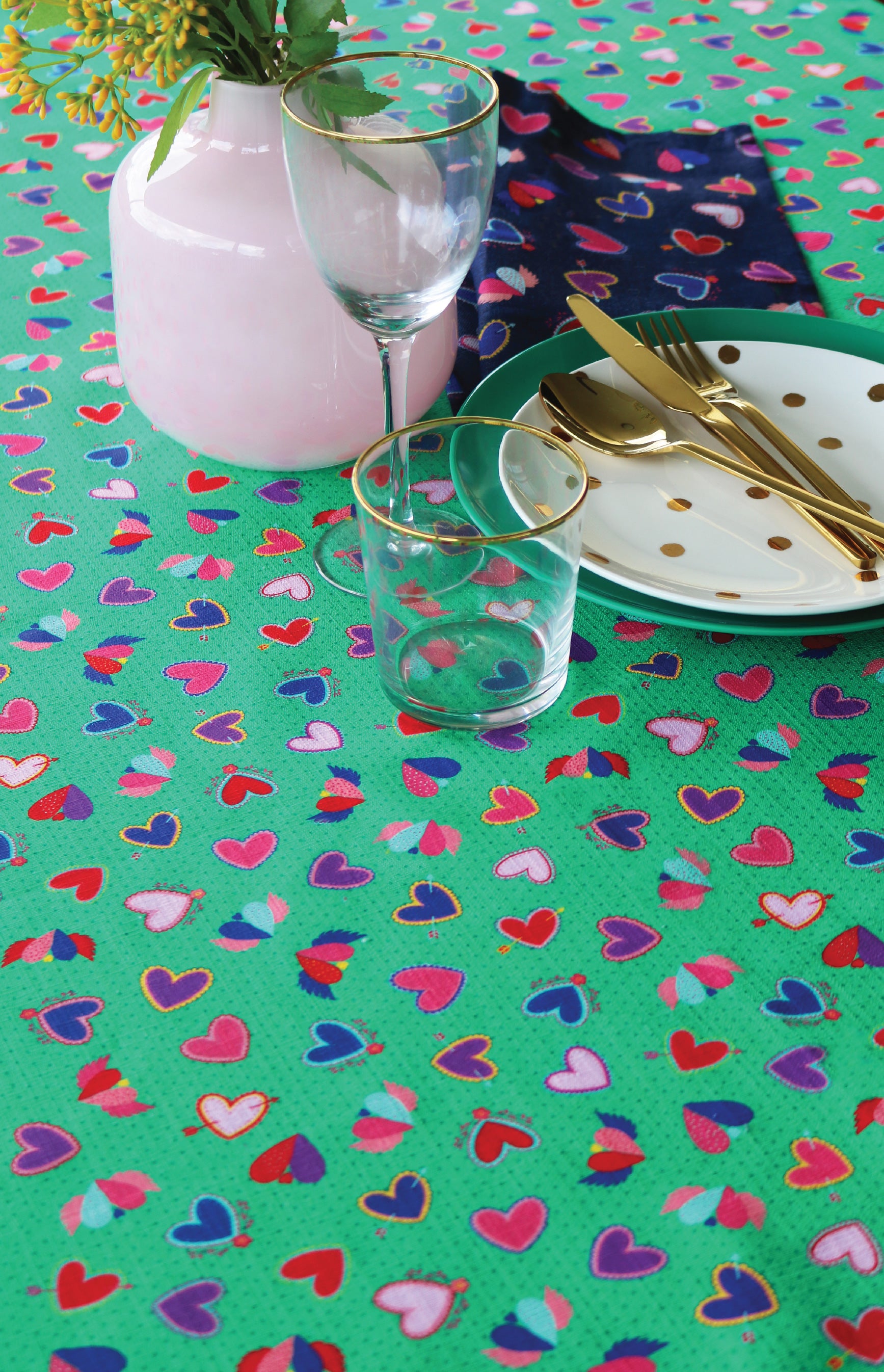 Tablecloth Medium in queen of hearts green
