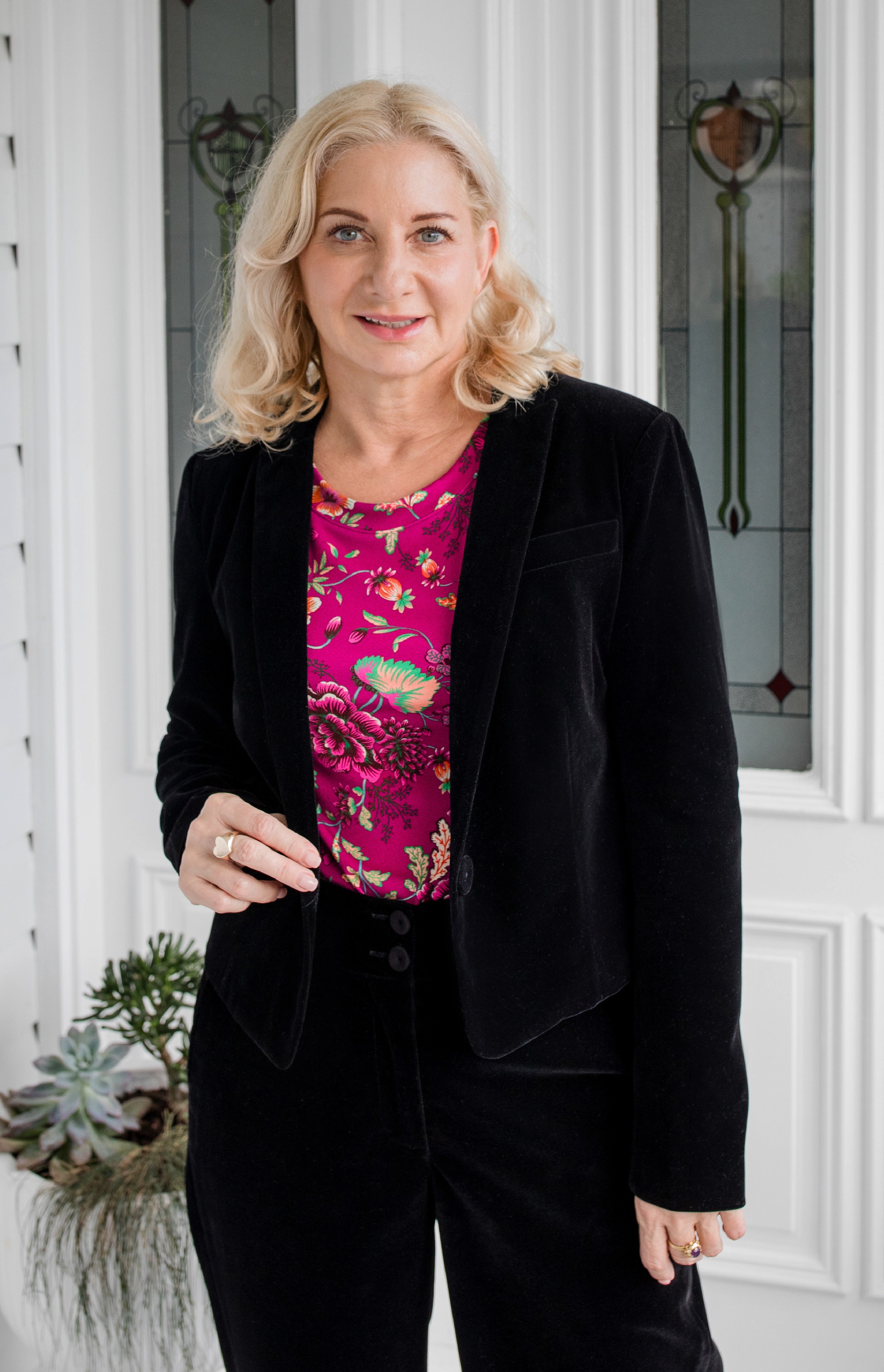 The perfect match... pair this top with our Perfect Velvet Blazer in black.