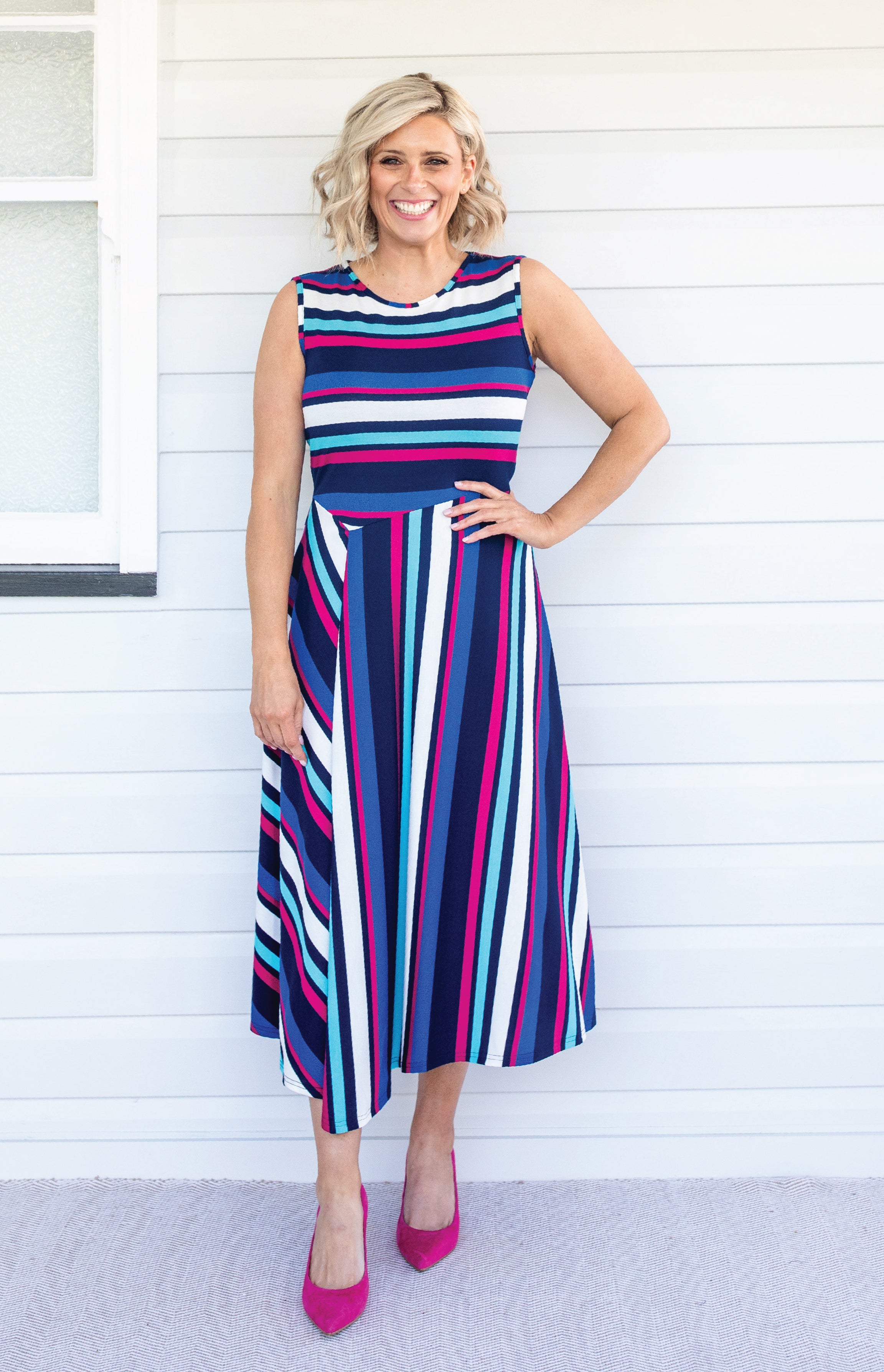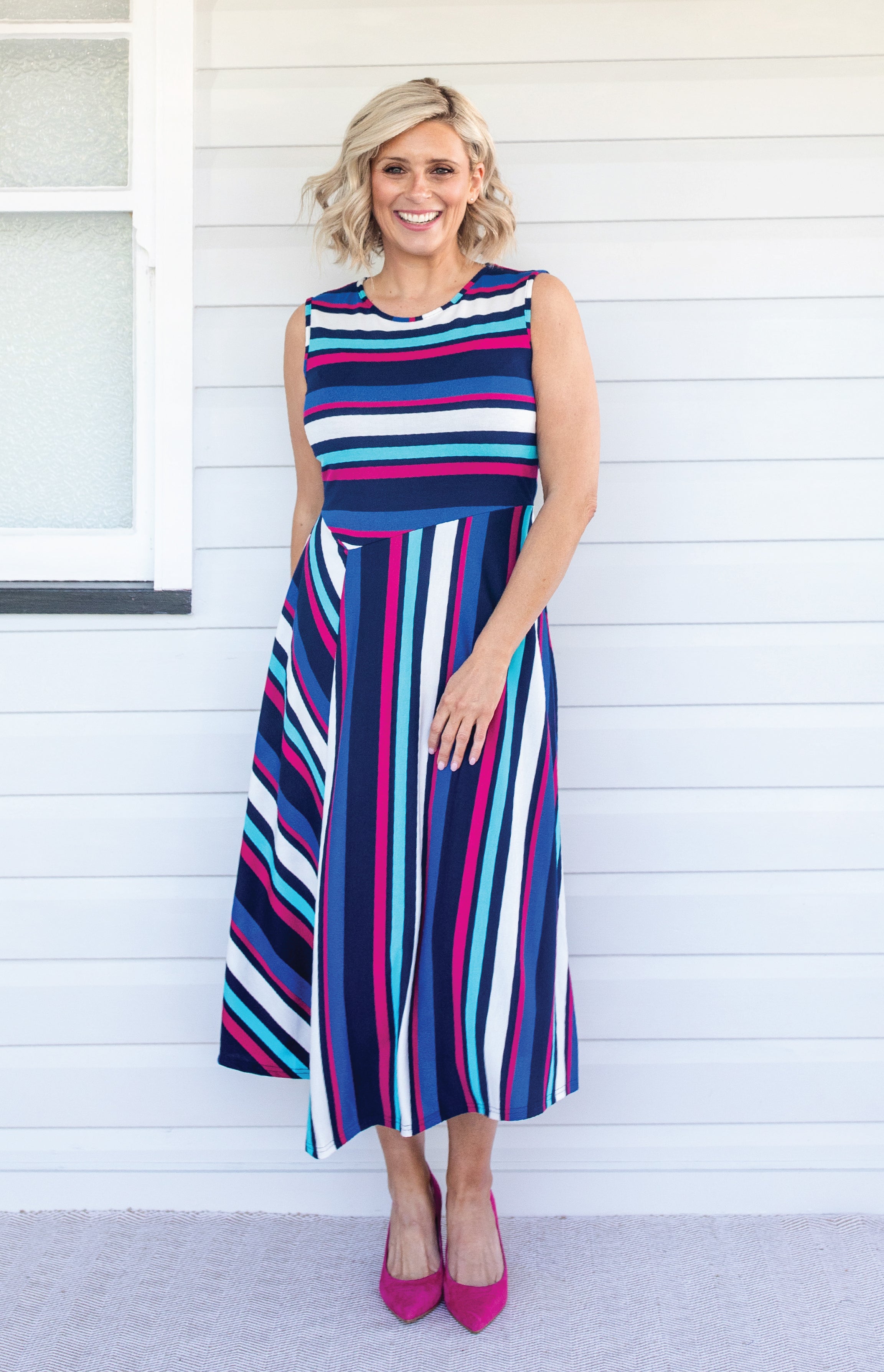 Zoe Dress in sparkle stripes